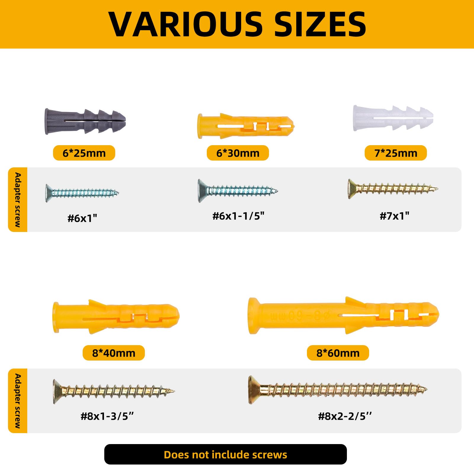 - Package Includes – You will receive 200 plastic wall anchors (screws not included) and a sleek, compact clear organizer box. All components are neatly sorted by size for quick access. Anchor size: #6x1, perfect for a variety of daily installation needs.