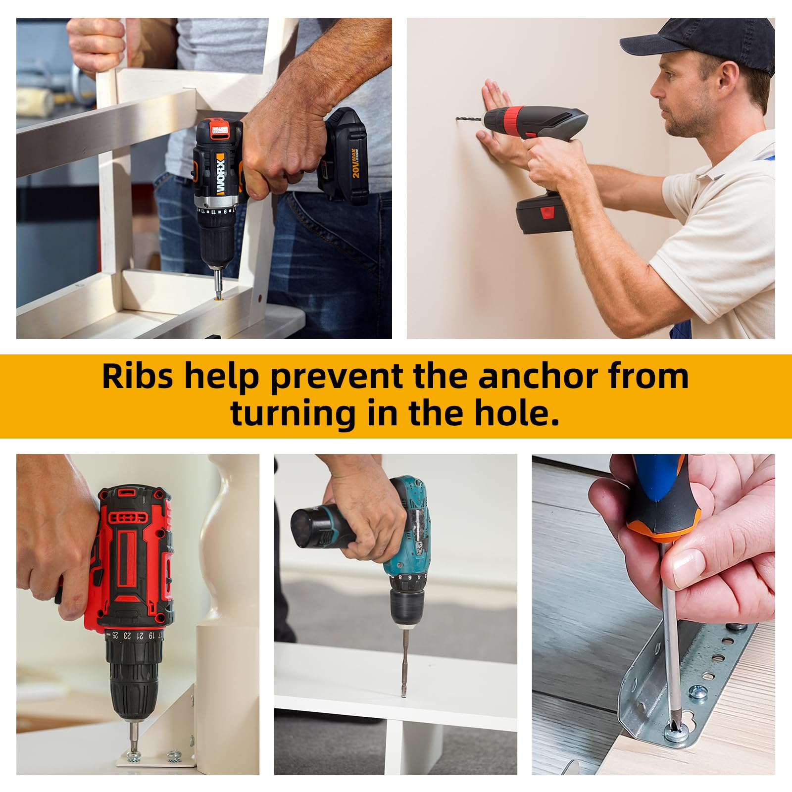 - Versatile for Multiple Surfaces – These ribbed plastic drywall anchors are ideal for use on brick walls, concrete, drywall, and wooden surfaces. Perfect for securely mounting heavy mirrors, brackets, curtain rods, picture frames, towel racks, light fixtures, and more—great for both home and office use.