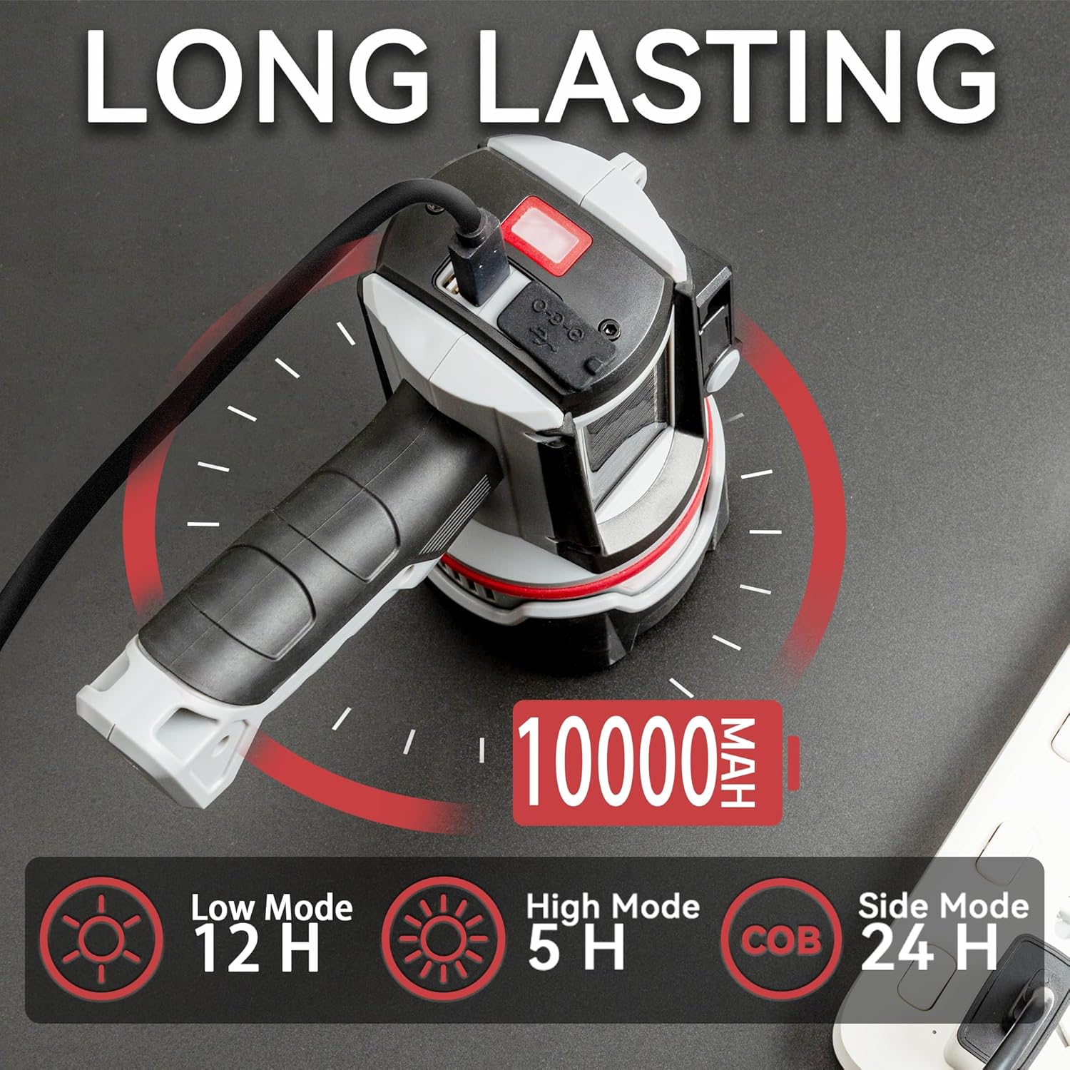 - 【3M Drop-resistant & IP54 Waterproof】We use a lot of rubber to strengthen this rechargeable spotlight, with thicker ABS plastic, the internal aluminum light cup, making it very durable, 3 meters drop can still be used, it will be your reliable partner. Excellent process design brings good waterproof performance, even if the whole fall into the water for no more than 3 minutes, there will be no damage.