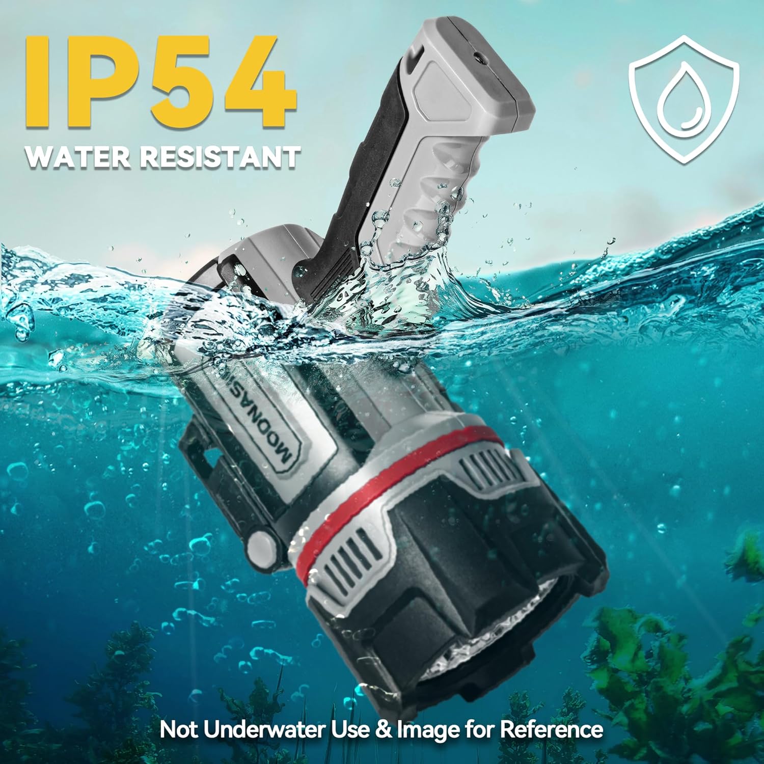 - IP54 Waterproof : This handheld spotlight rechargeable can be used normally even in bad weather