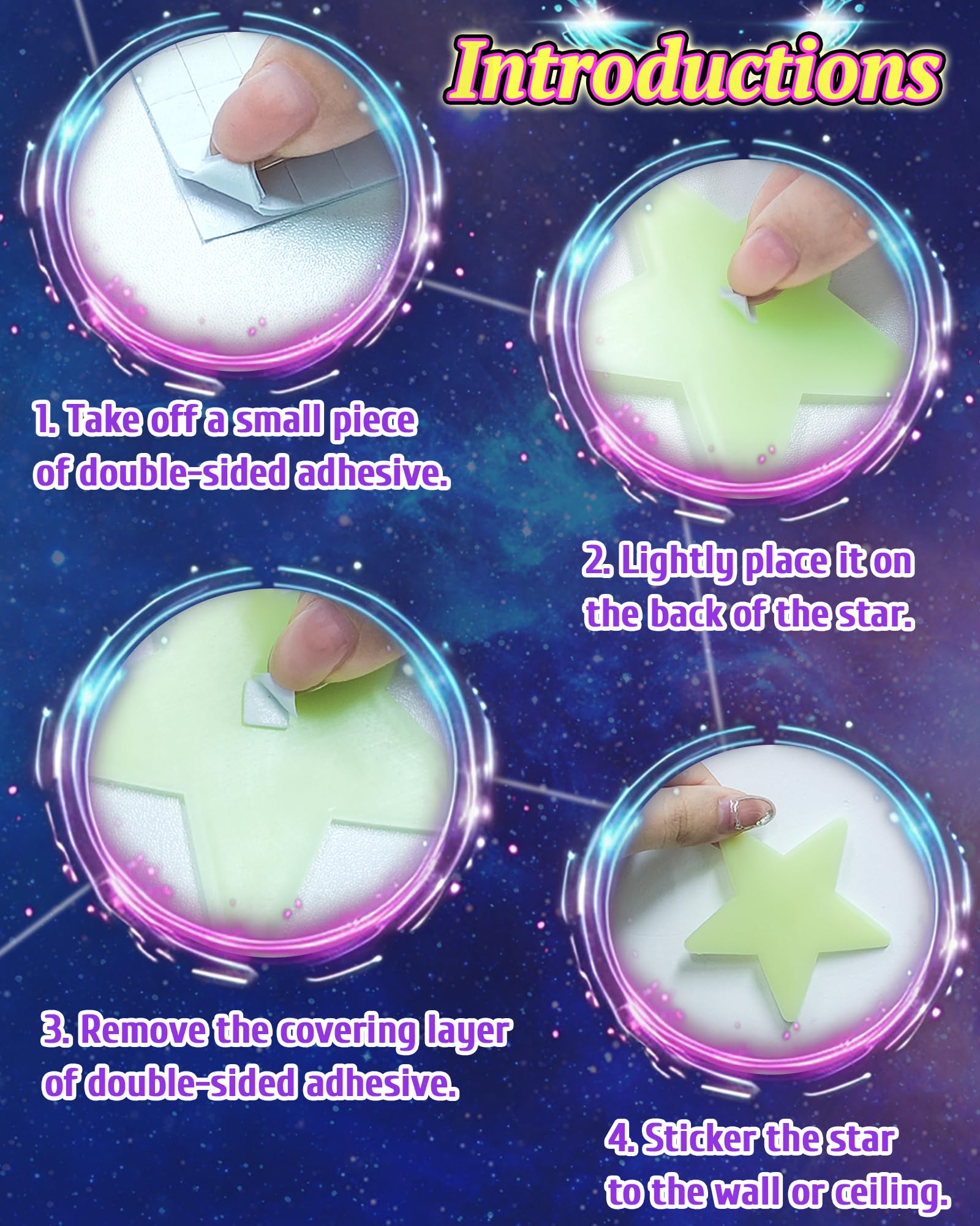 - Glow In The Dark Stars: Each pack includs 200 pcs glow in the dark stars and a bonus moon. The glowing stars would make the room looks like the night sky when the room is dark. It's a good solution to help those kids who fear of the dark, making it perfect for bedtime.