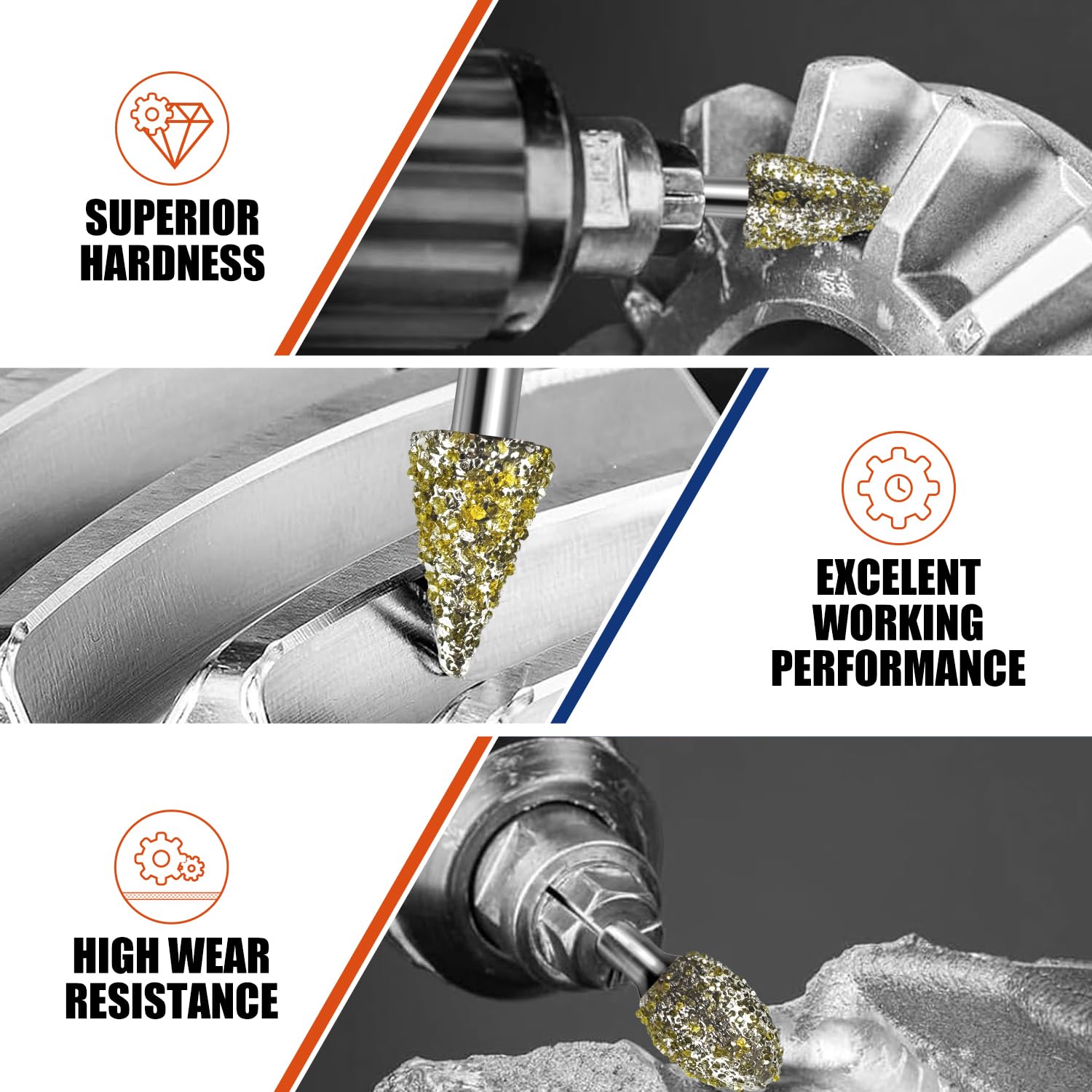 - 46-GRIT DIAMOND GRINDING BITS: Bit head surface is completely coated with fine diamond particles, with high grinding efficiency, high durability and stable quality, and safer to use.