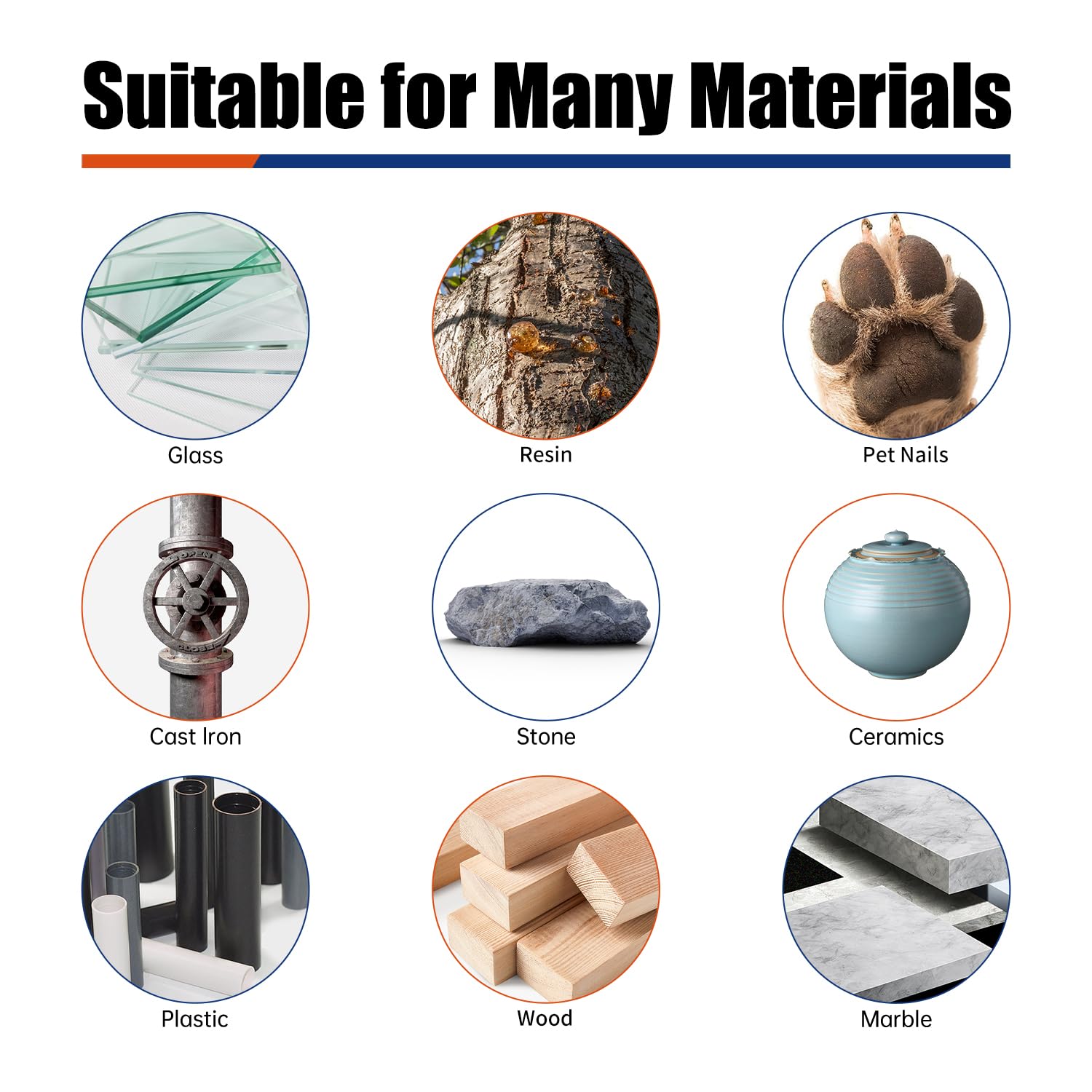 - Note: When grinding, use light pressure. Excessive force will make it difficult to discharge the powder, affecting the grinding efficiency and easily damaging the drill bit. Adding water to cool the grinding process will be safer, and the service life of the drill bit will be longer.