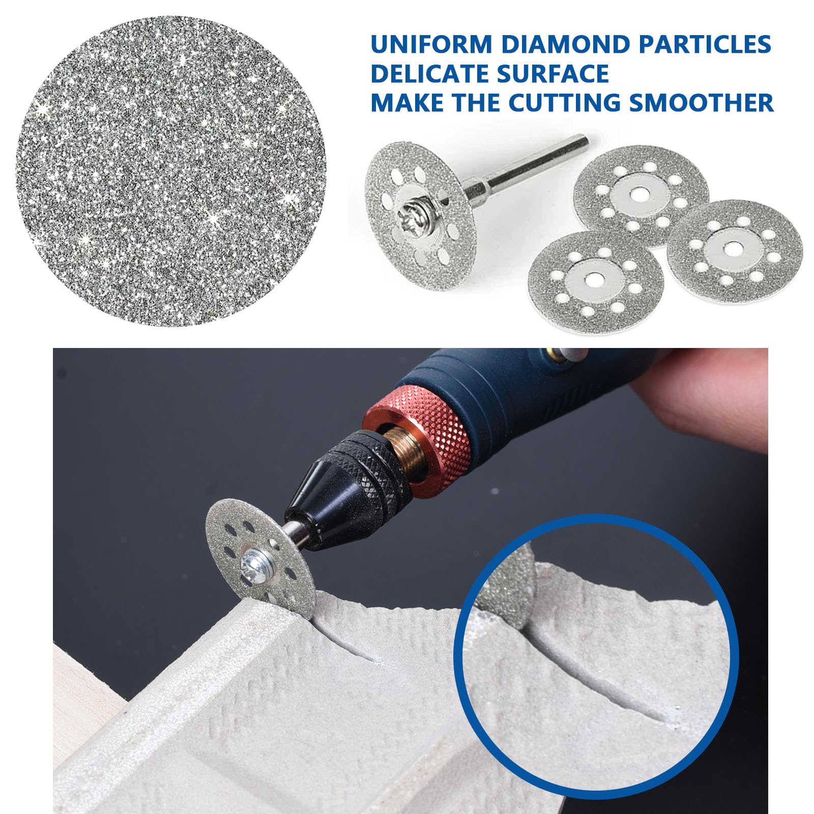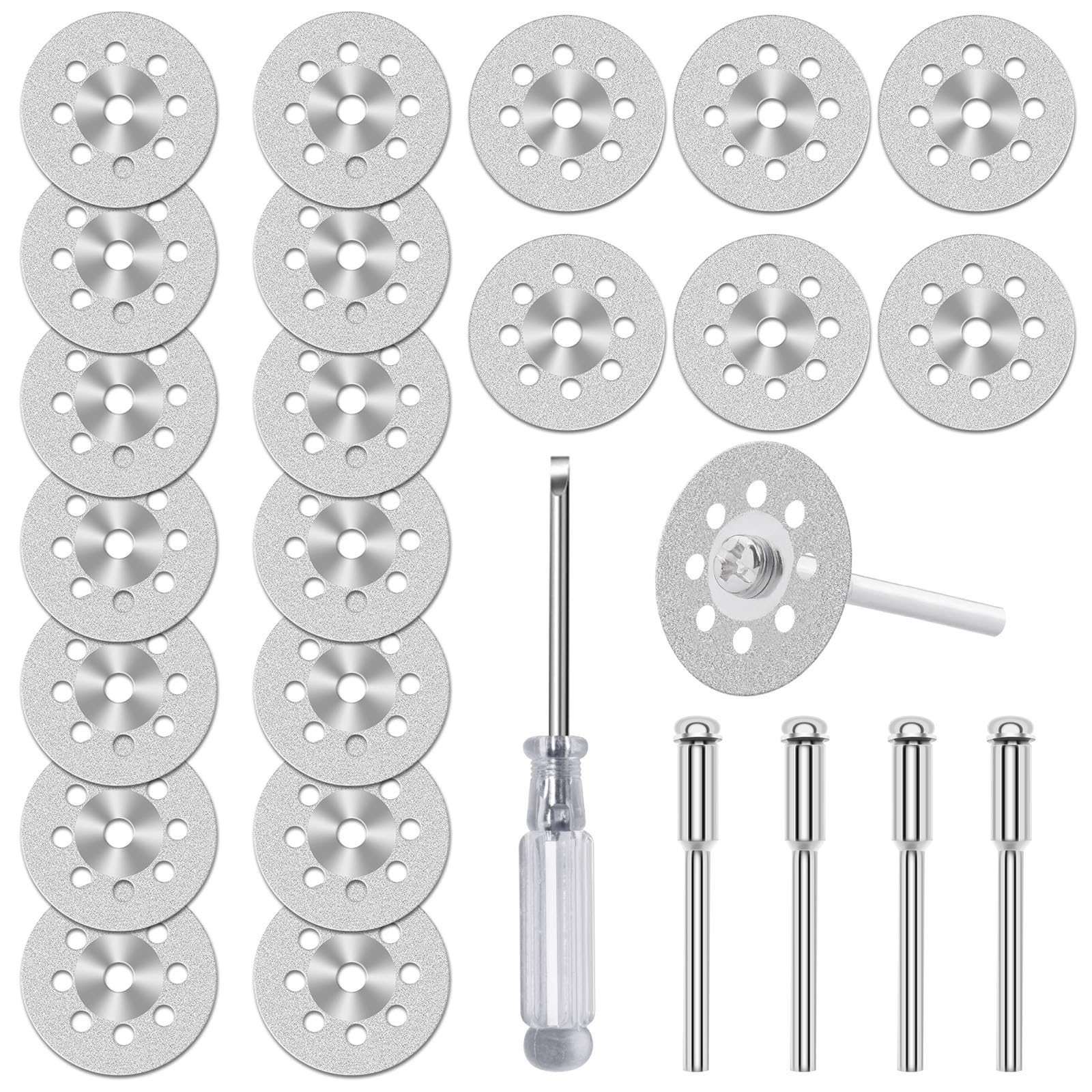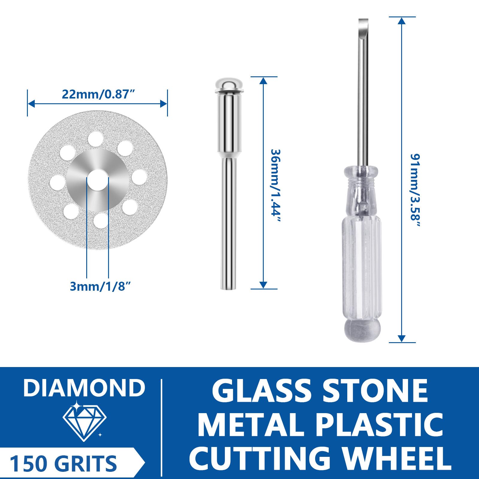 - Package Includes: You will get 20pcs 545 diamond cutting wheels (22mm) , 4pcs 402 mandrels (3mm) and 1pc screwdriver