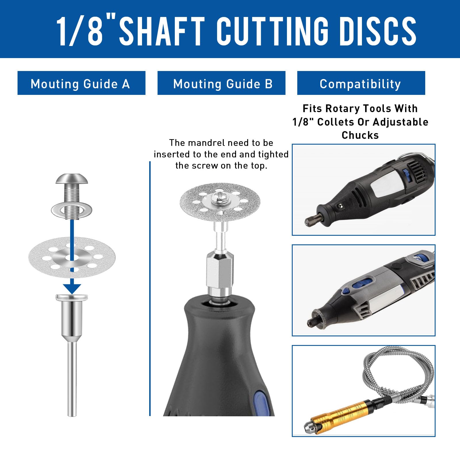 - Compatibility: Equipped with 1/8" shank mandrels, designed for rotary tools and replacement EZ545/544 lock cut off wheel. Compatible with most power rotary tools and drills in the market. Simple to install, easy to use