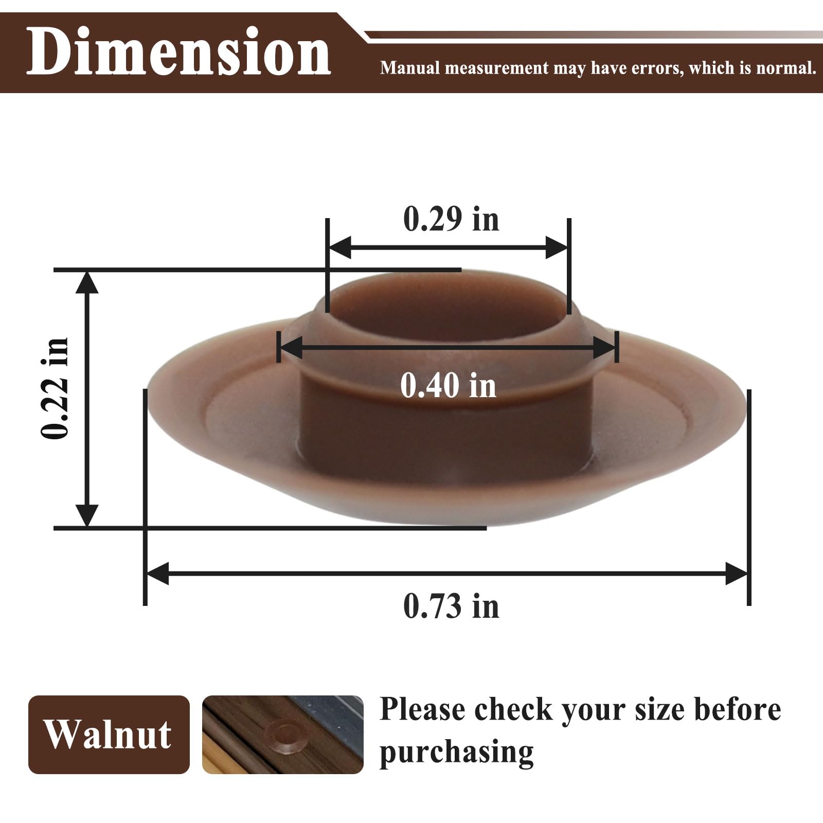 - Dimension - Top diameter of 3/4'', bottom diameter of 3/8''. Perfect fit for most standard door thresholds.