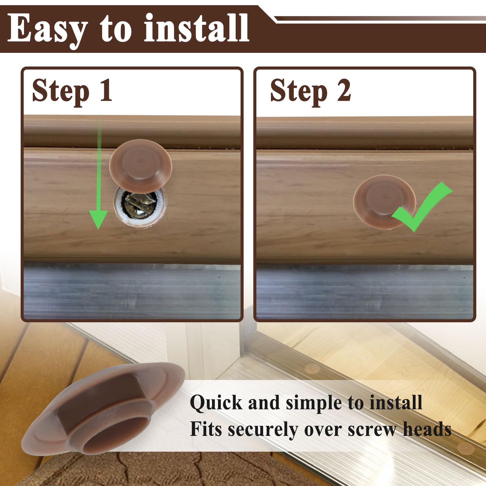- Installing - Easy to operate, simply align and snap the covers into place over the threshold screw holes for a quick installation.