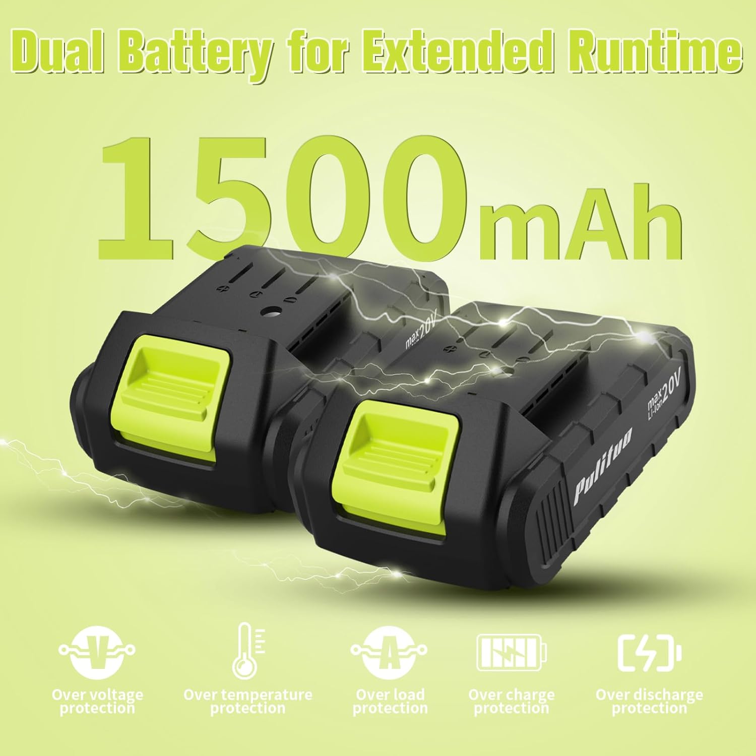 - Powerful 20 V Motor and 2 x 1.5 Ah Battery: Equipped with a robust 20 V motor and 2 Li-ion battery, this cordless drill delivers smooth power for various drilling and driving tasks;Its rechargeable battery ensures you're always ready for next project