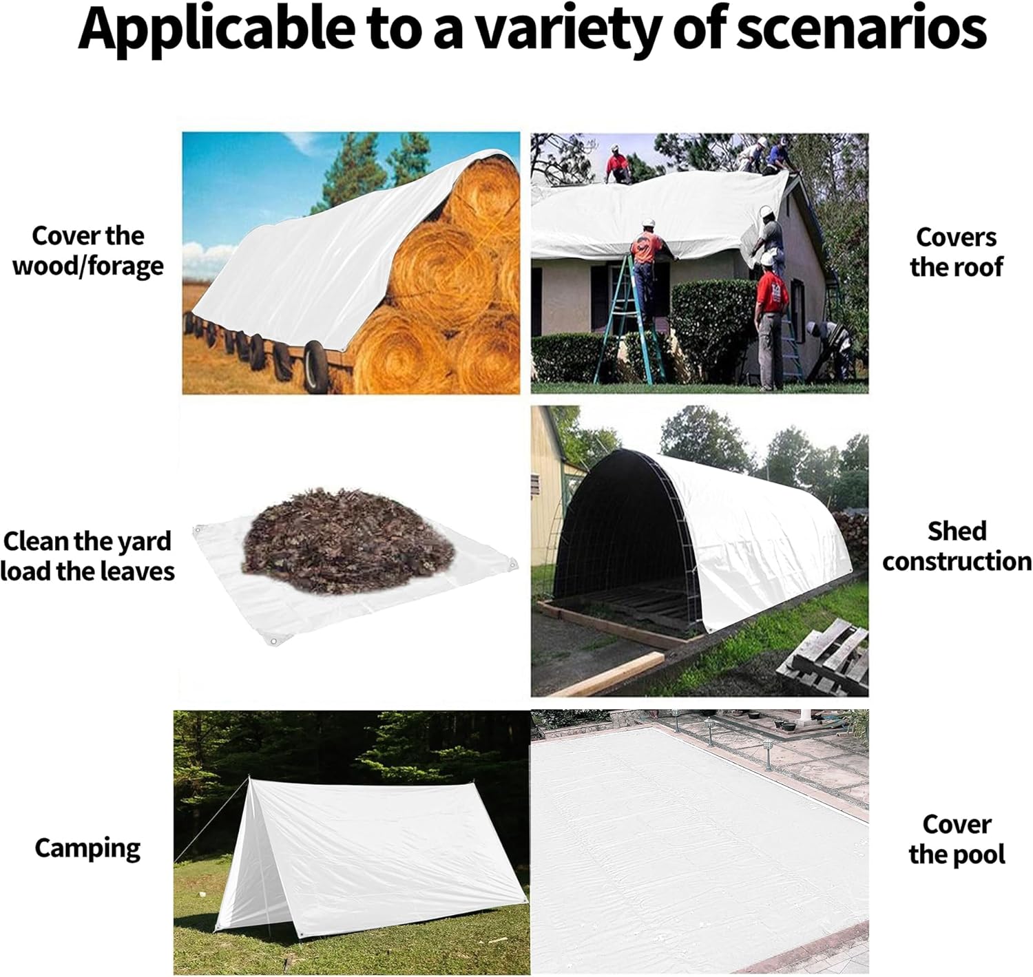 - 【Meet your use in various scenarios】Whether it's covering swimming pools, boats, cars, or awnings, outdoor furniture, wood, waterproofing when camping, putting a tarp over a board when decorating, or as a roof waterproofing tool, our tarps have everything you need.