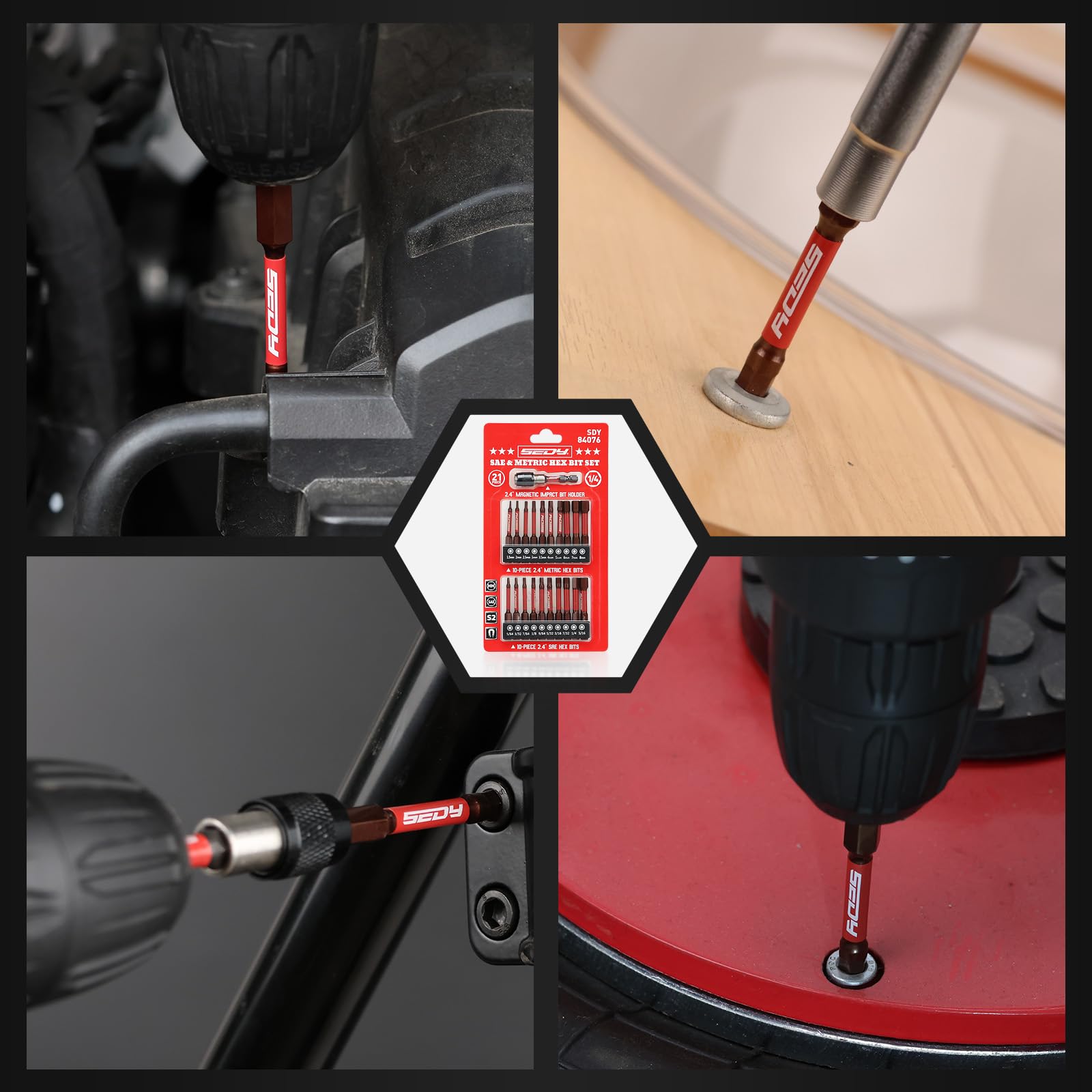 - COMPLETE SET - This 21-piece set includes 10 SAE and 10 metric hex bits ranging from 1.5mm to 8mm and 5/64" to 5/16", providing a comprehensive range for various screw-driving applications in automotive, DIY, and home repairs.
