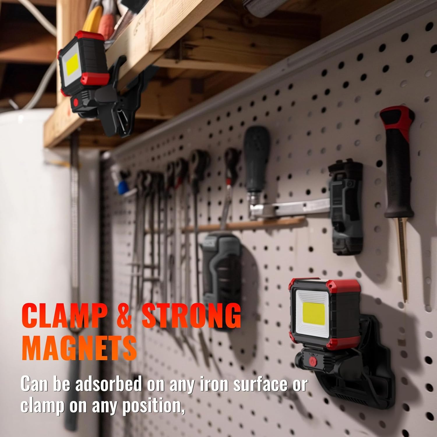 - 2100LM & 3 Light Modes: The 2100 lumens clamp work light has 3 light modes( COB high mode, COB low mode and COB strobe mode). The ON/OFF button allows you to easily cycle through the 3 light modes. The work light with clamp is enough to deal darkness in your life.