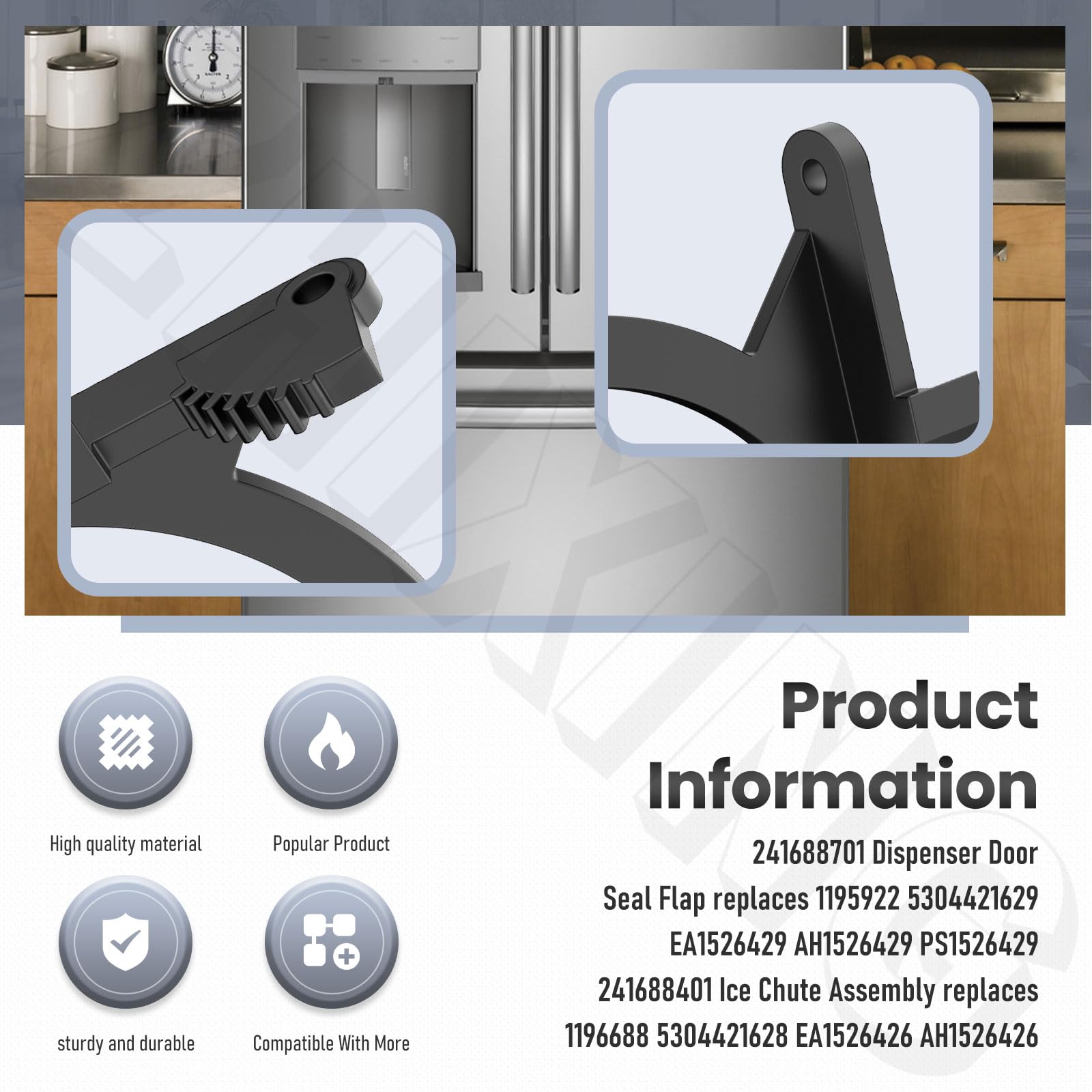 - 241688701 Dispenser Door Seal Flap replaces 1195922 5304421629 EA1526429 AH1526429 PS1526429 241688401 Ice Chute Assembly replaces 1196688 5304421628 EA1526426 AH1526426