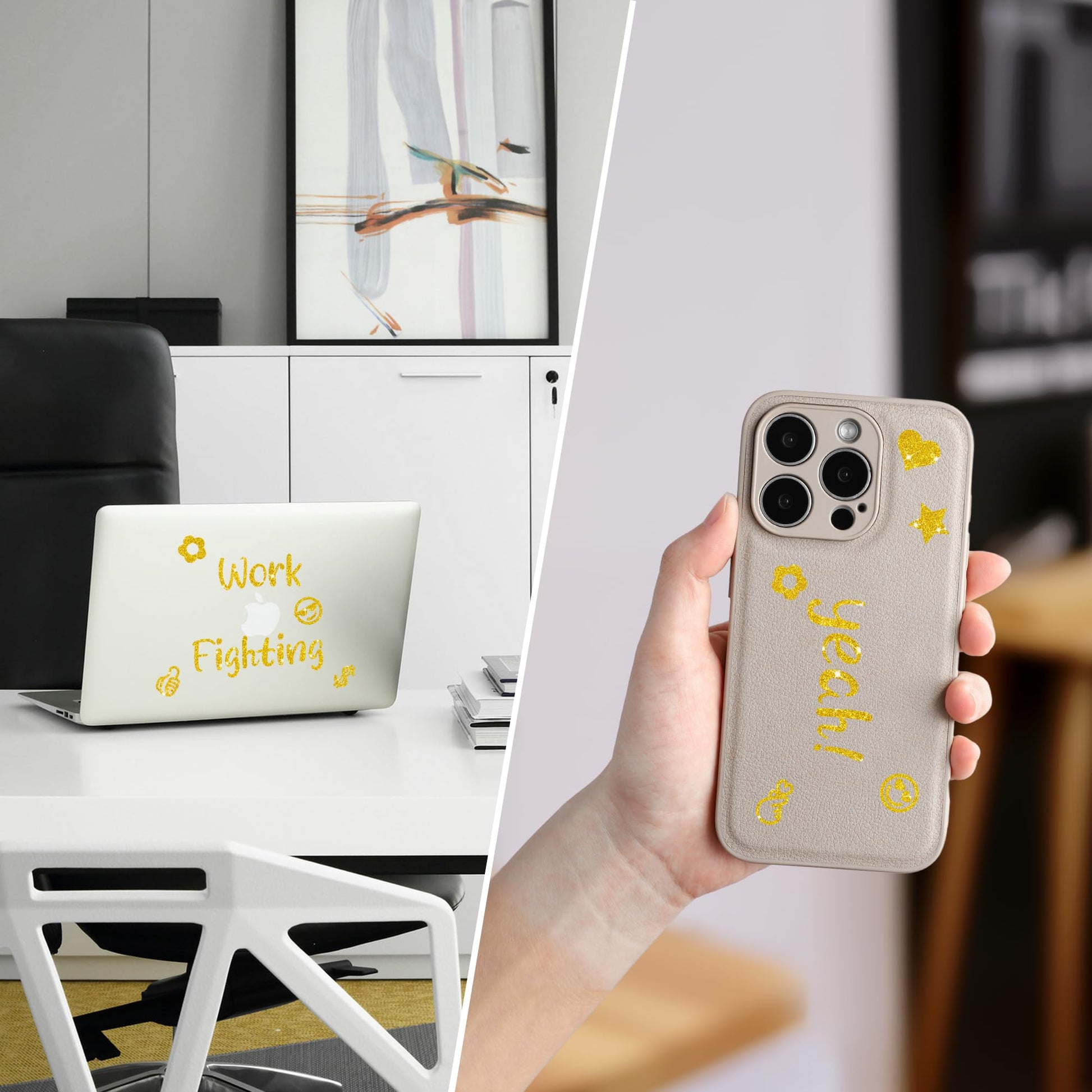 - High-Quality Durable Material: Crafted from premium vinyl, these self-adhesive stickers are durable and long-lasting. They offer great adhesion and won't easily fall off. The stickers are tear-resistant and highly fade-resistant, ensuring that the glitter remains vibrant over time. You can trust that the items you decorate with these stickers will look stunning for an extended period