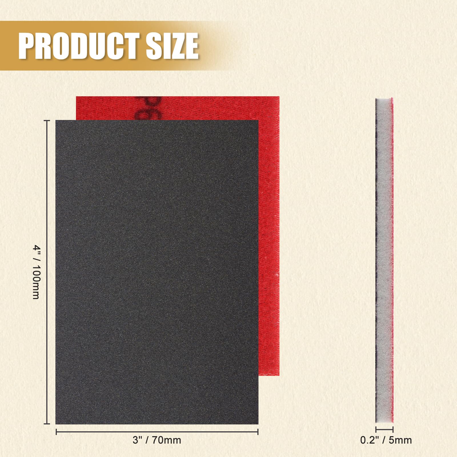 - 【12 Different Grades Grits】180/240/320/400/600/800/1000/1200/1500/2000/2500/3000Grits with 2 pieces of each grit. Note: The lower the grit number, the coarser the abrasive; while the higher the grit number, the finer and smoother the abrasive. This range of grit options allows for precise control of the sanding process, from removing rough material to fine polishing. SIZE: 4"x3"x0.2" (100mm*70mm*5mm)