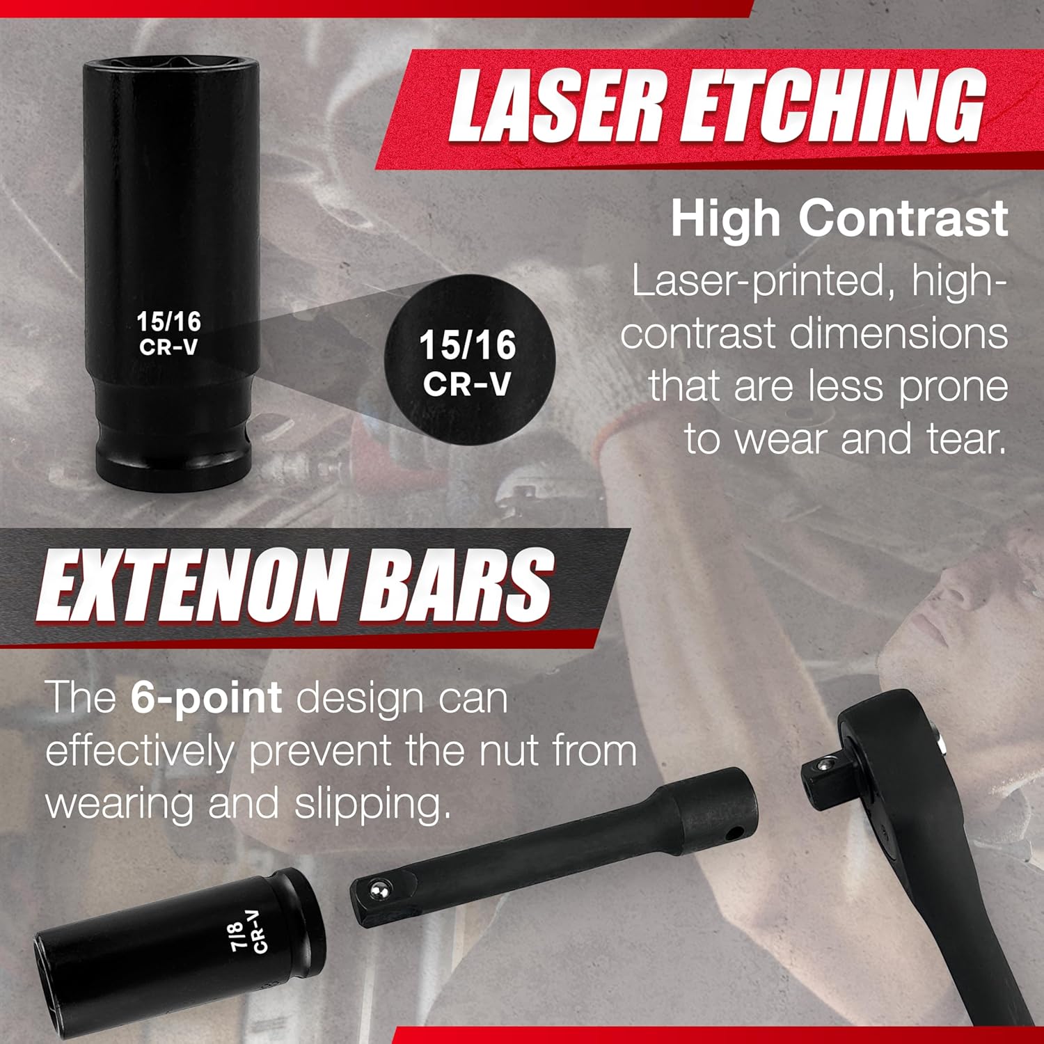 29-Piece Deep Impact Socket Set with Extensions | SAE & Metric Cr-V Steel