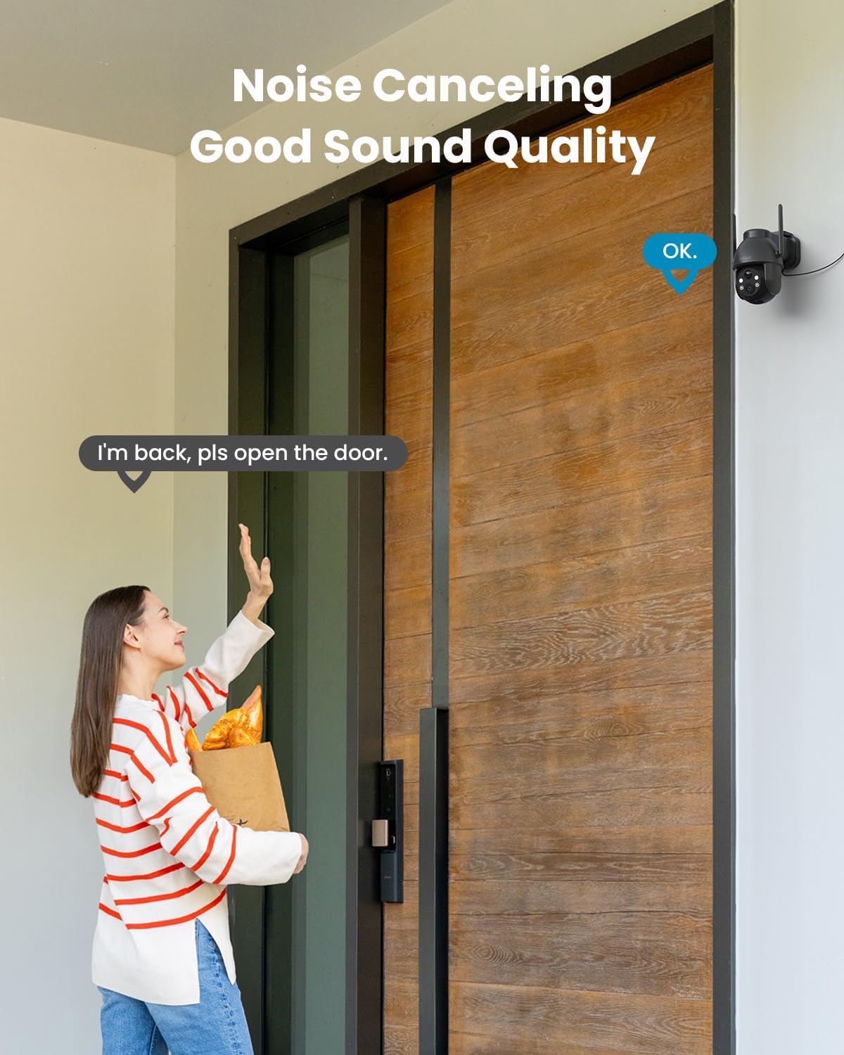 - 【Smart PIR Motion Detection & Two-Way Audio】The solar security cameras wireless outdoor is equipped with advanced PIR motion detection technology that supports customized motion zones and scheduled alert plans to reduce false alarms by up to 90%. When motion is detected, it instantly sends alert notifications, records alert videos, activates alert sounds and spotlights, and can use the built-in speaker and microphone to keep unwanted visitors out and give you peace of mind.(This product does not have auto-tracking functionality)