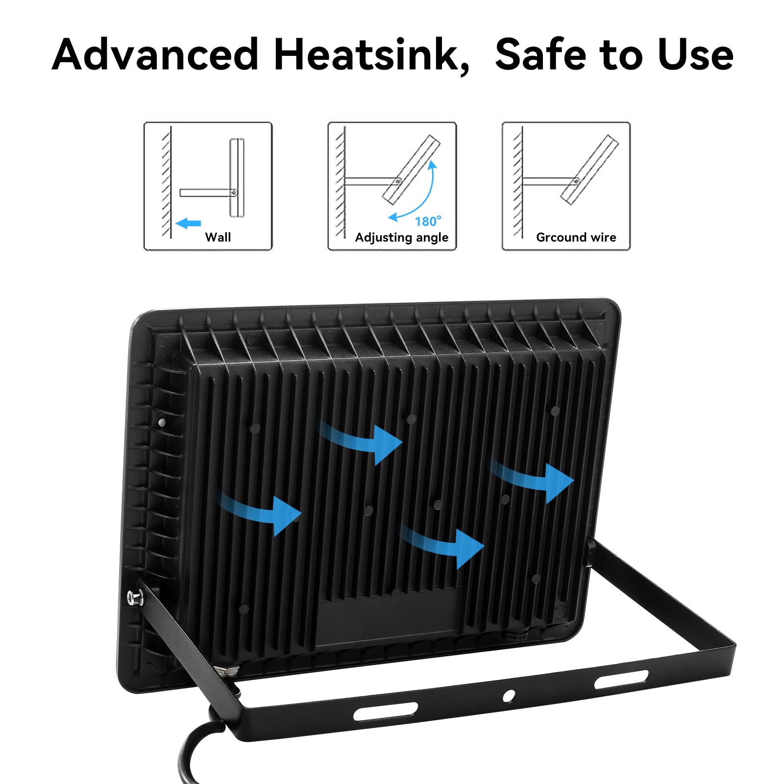 - 【Stable & Easy to Install】Come with UL listed US plug and a over 6ft cord, this security spotlight can also be mounted on a tripod as a work light.A widened and thickened metal bracket makes the flood lights more stable. The adjustable bracket, which is easy & flexible to adjust to a different angle as your requirement, helps to install the light with any angle you required.