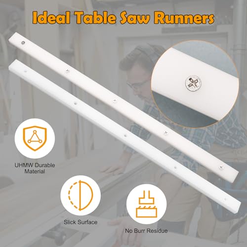 - ¡¼Package Included¡½You will receive 2 pcs 17-inch long table saw runners, 3/4 inch wide and 3/8 inch thick(each with 5 pre-drilled holes), and 12 screws for easy installation. Suitable for most standard table saw slots.