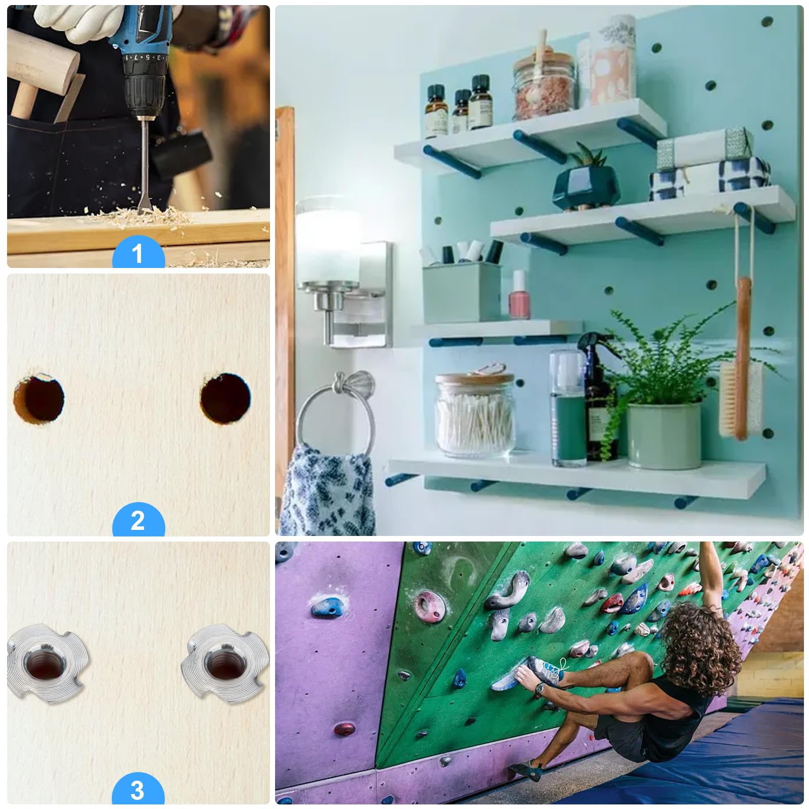 3/8"-16 T-Nuts (20 Pack), 304 (18-8) Stainless Steel, 7/16" Barrel Length, 4-Pronged Tee Nut for Wood, Rock Climbing Holds, Cabinetry