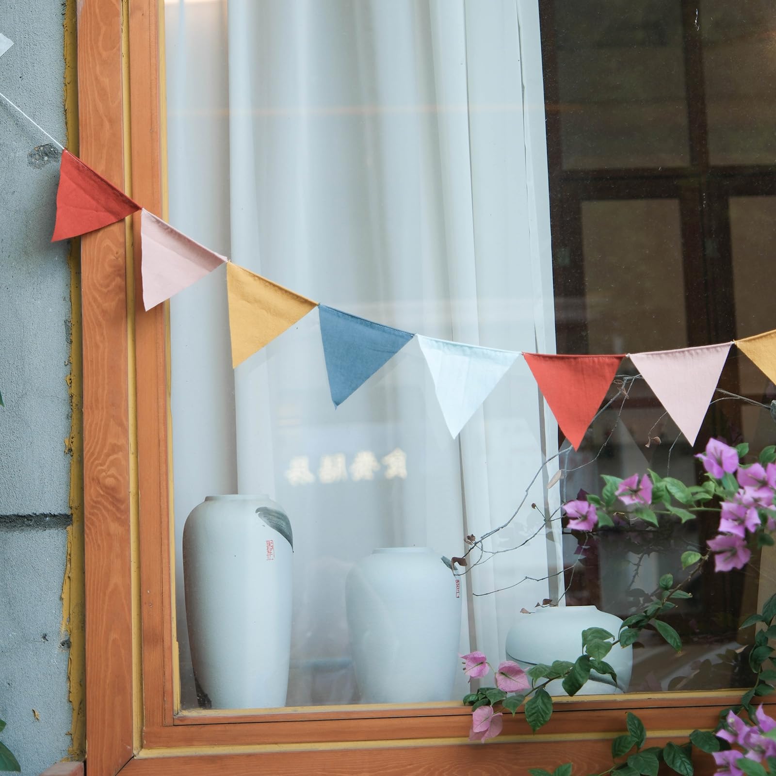 - Single sided cotton banner, consisting of 10 triangles, size: 55 inches x 4.2 inches x 3.9 inches(packaging includes 2 single-sided flags)