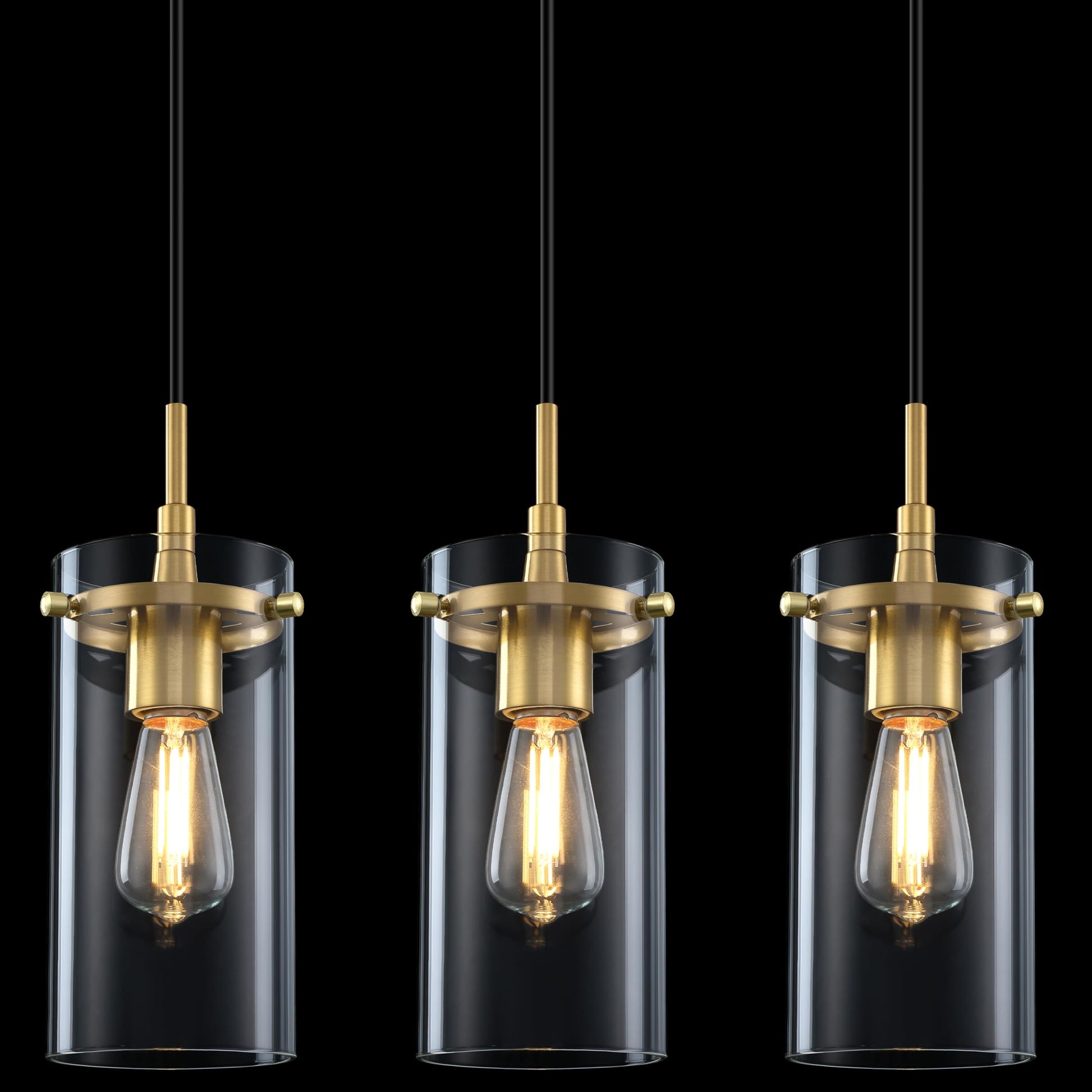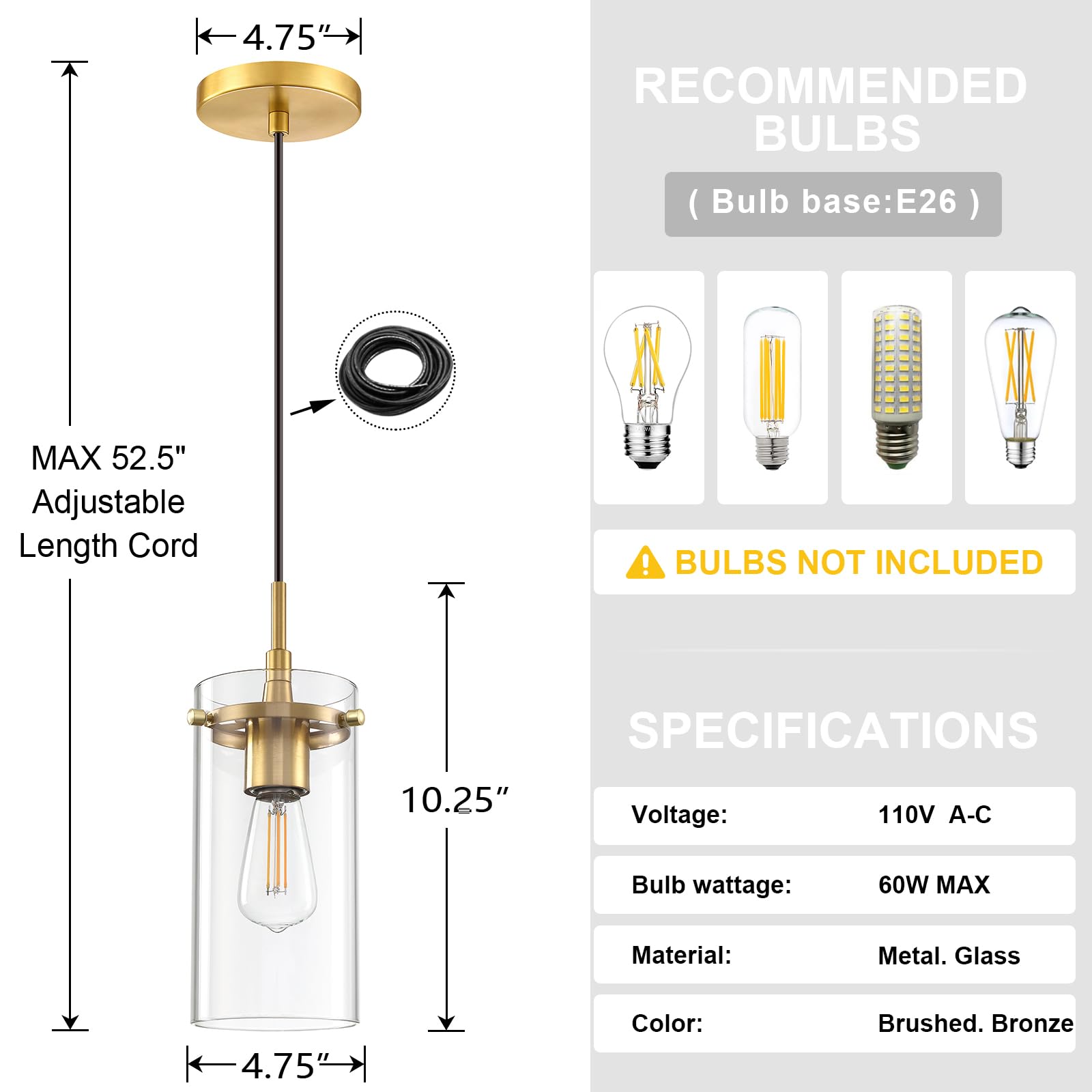 Details: 3 Pack 1 Light Hanging Kitchen Island Modern Concise Clear Glass Pendant Ceiling Light Fixture,Brushed Bronze Finish Over Sink Dining Room Bedroom Hallway,UL Listed