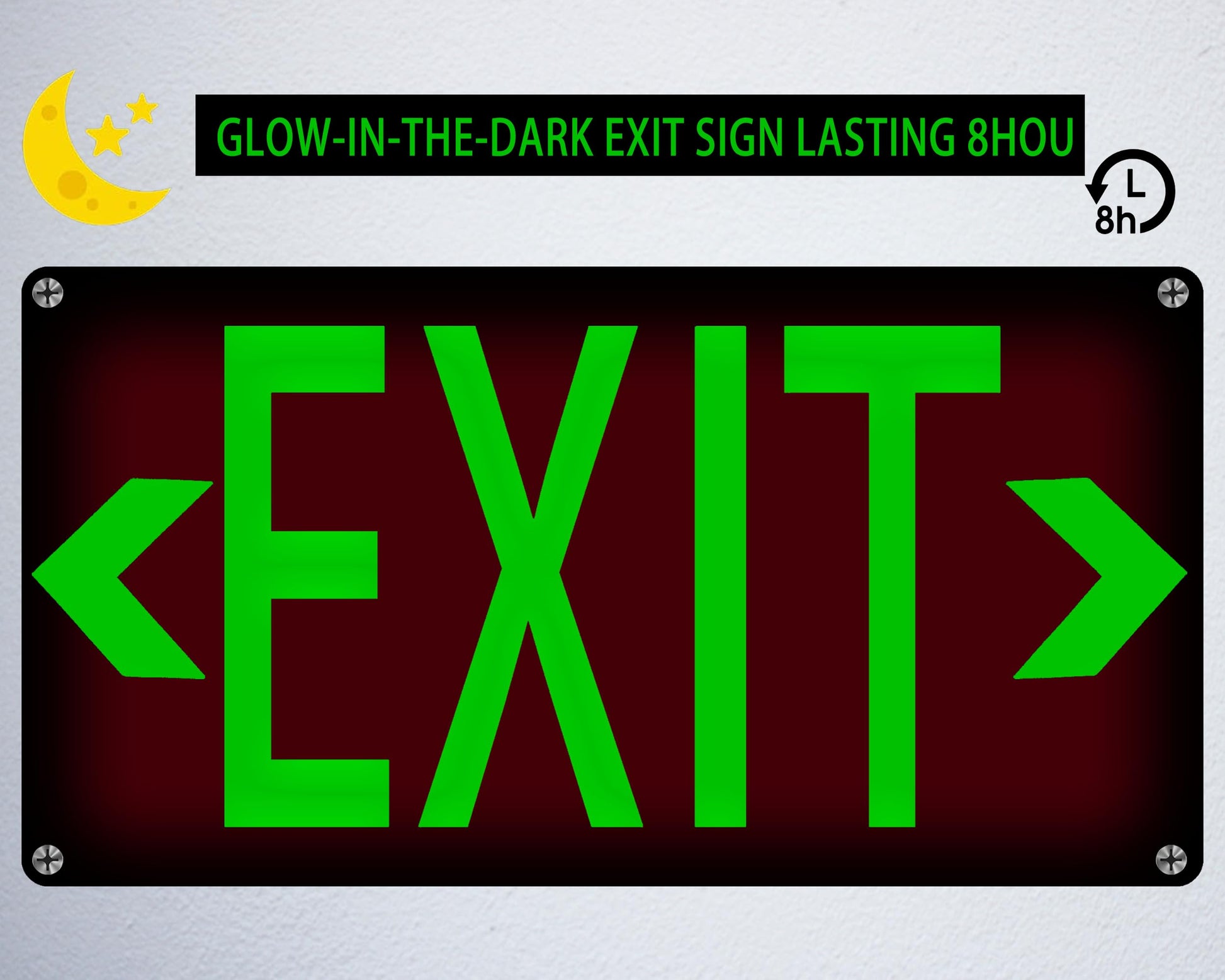 - High Quality: --- Our Exit Photoluminescent Signs Made from 0.04 inch thick 100% rust free strong aluminum, will charge automatically from light and will retain afterglow in the dark, Does Not Require Electrical Wiring.