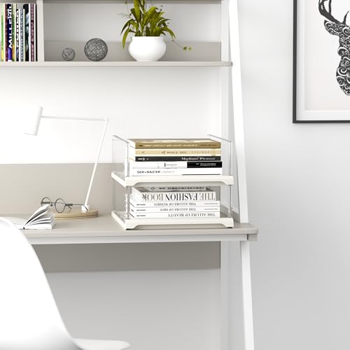 3 Pack Stackable Closet Organizers and Storage Shelves - Transparent Sweater Organizer for Closet, Bathroom, Kitchen, Cupboard, Laundry Room, and Office