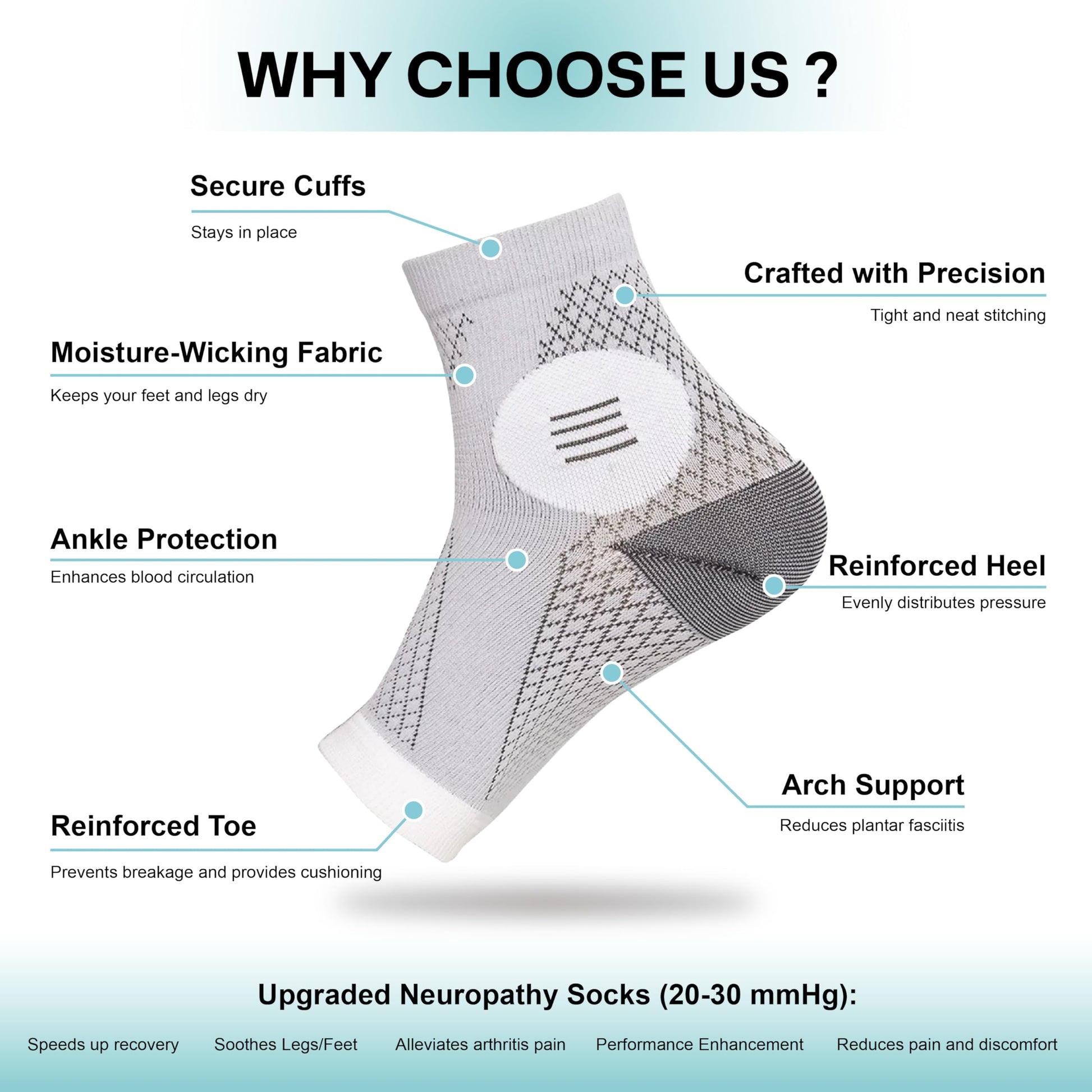 - Instant Pain Relief: These neuropathy socks provide immediate relief for foot, arch, and ankle pain caused by conditions like plantar fasciitis, arthritis, bursitis, and more, our compression ankle socks will make them ideal for anyone suffering from chronic foot discomfort