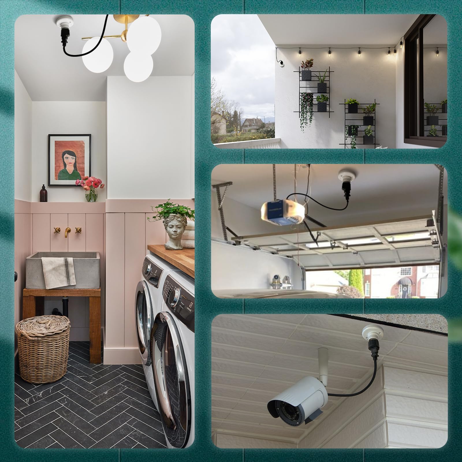 - 【Wide Range Of Applications】This light socket outlet adapter can provide you with outlets in multiple scenarios, such as warehouse, attic, porch, utility room, room, balcony, garage and so on. It is quick and easy to add temporary outlets for you anytime, anywhere.
