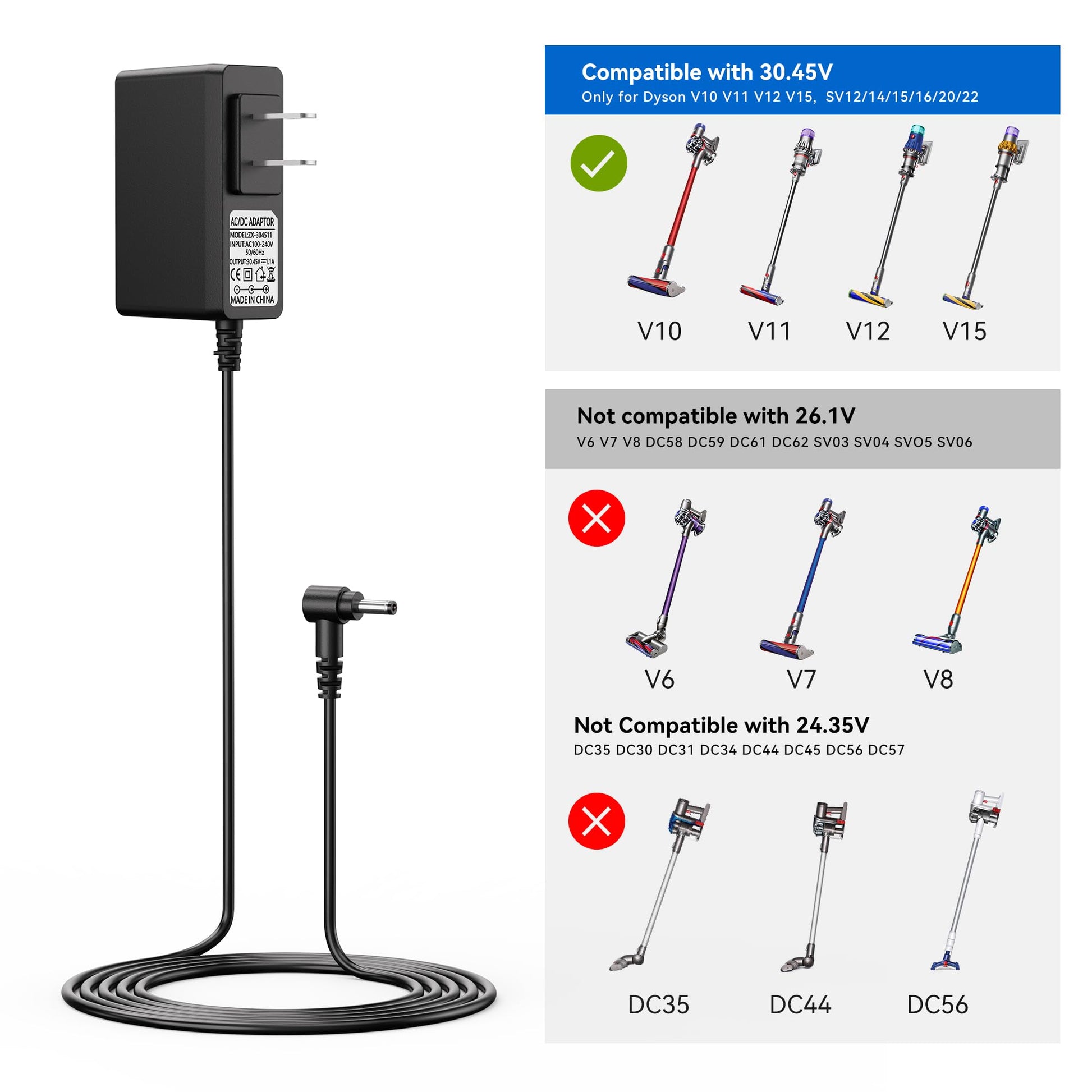 - 【Compatible Models】30.45V Cordless Vacuum Charger Compatible with Dyson V10 V11 V12 V15 SV12 SV14 SV16 SV20 SV22 SV27 SV28 SV30 Cyclone Absolute Animal Slim Motorhead Cordless Vacuum Cleaner (Part Number: 217160-02 217160-01 217160-03 969350-02 969350-01 969350-03 969350-04 969350-05 969350-04 969350-05 969042-01 36936601 36867801)