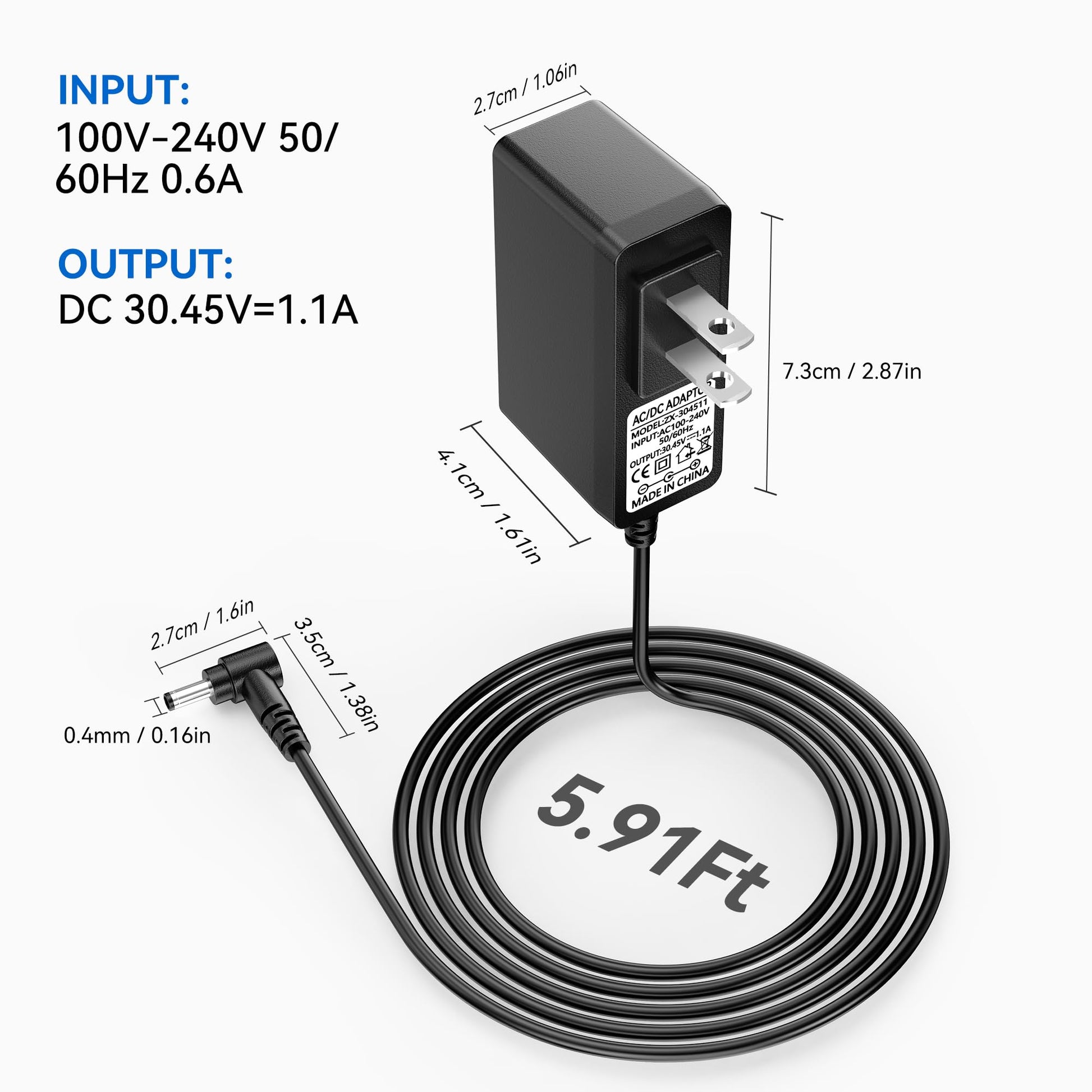 - 【Specific Parameters】AC 100V-240V 50/60Hz 0.6A, DC 30.45V=1.1A, Cable length: 1.8m/5.9ft