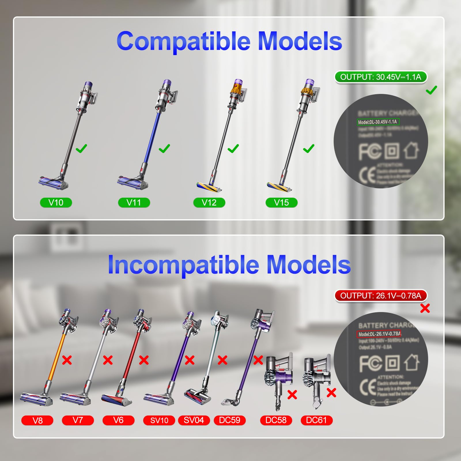 - Gasmocs 30.45V Cordless Vacuum Cleaner Charger Compatible With V10 V11 V15 V12 SV12 SV14 SV15 SV16 SV20 SV22 Cyclone Animal Motorhead Absolute Trigger Cordless Vacuum Cleaner