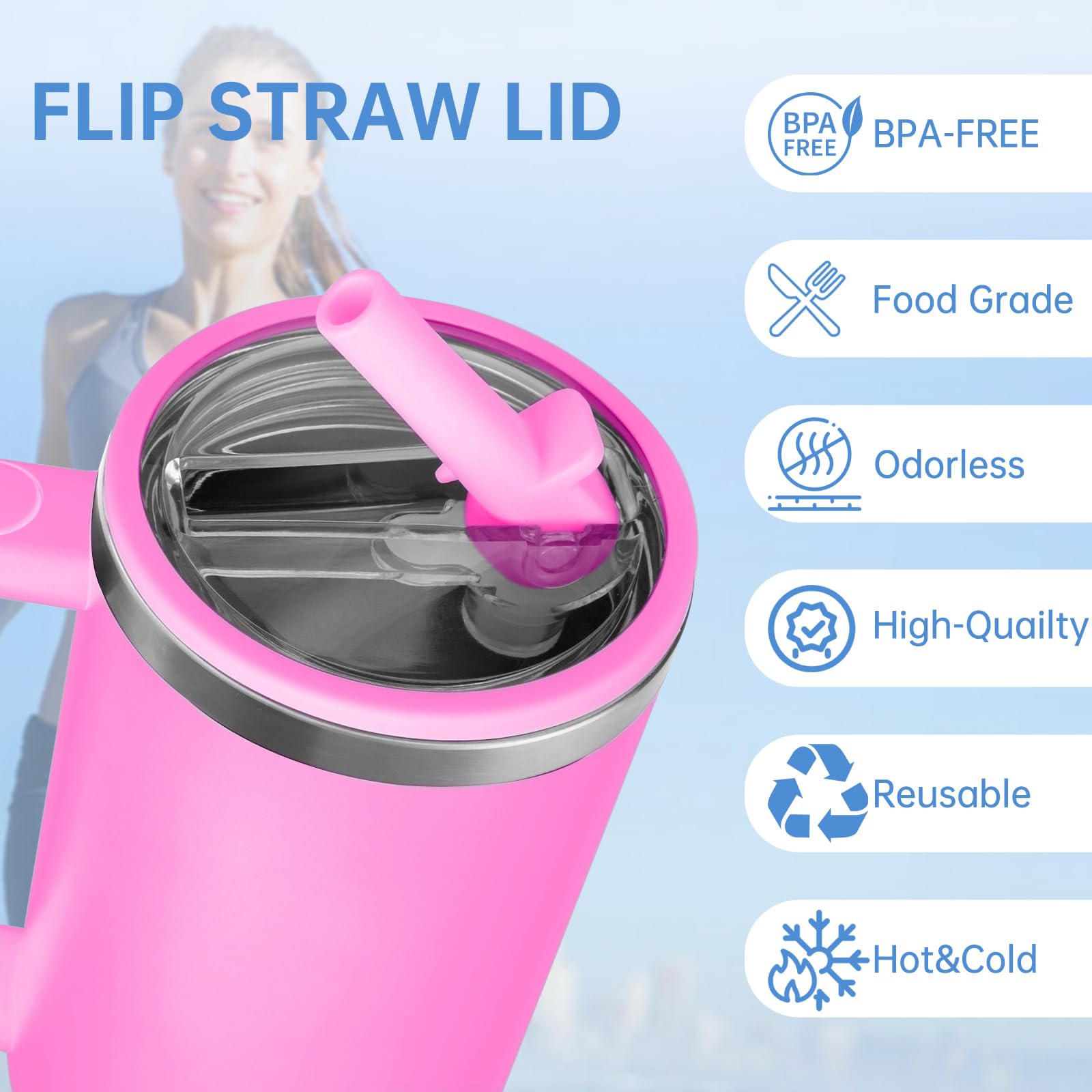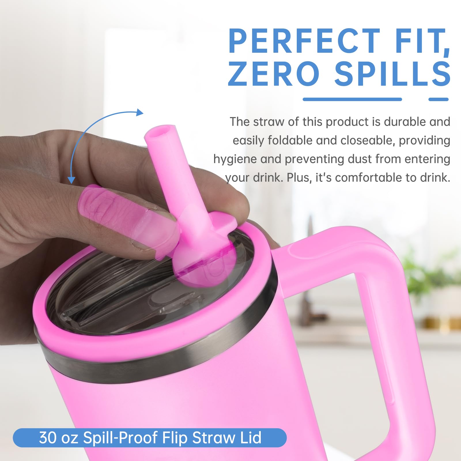 30 oz Replacement Lid for Stanley Quencher Tumbler with Handle, 2 PCS Spill Proof Lid Accessories Fit, Leak-Proof Splash Resistant Replaceble Cover Cap for Stanley, (Pink)