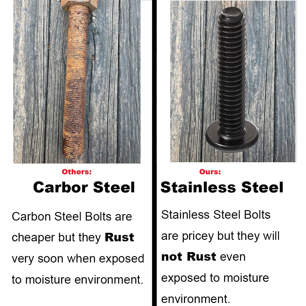 - 30 pieces of 1/4-20 threaded inserts for wood - 3/5" (15mm) Length, 30 pieces of 1/4-20 furniture bolts black oxide- 3/4 in. length, and 30 pieces of 1/4-20 black flat washers.