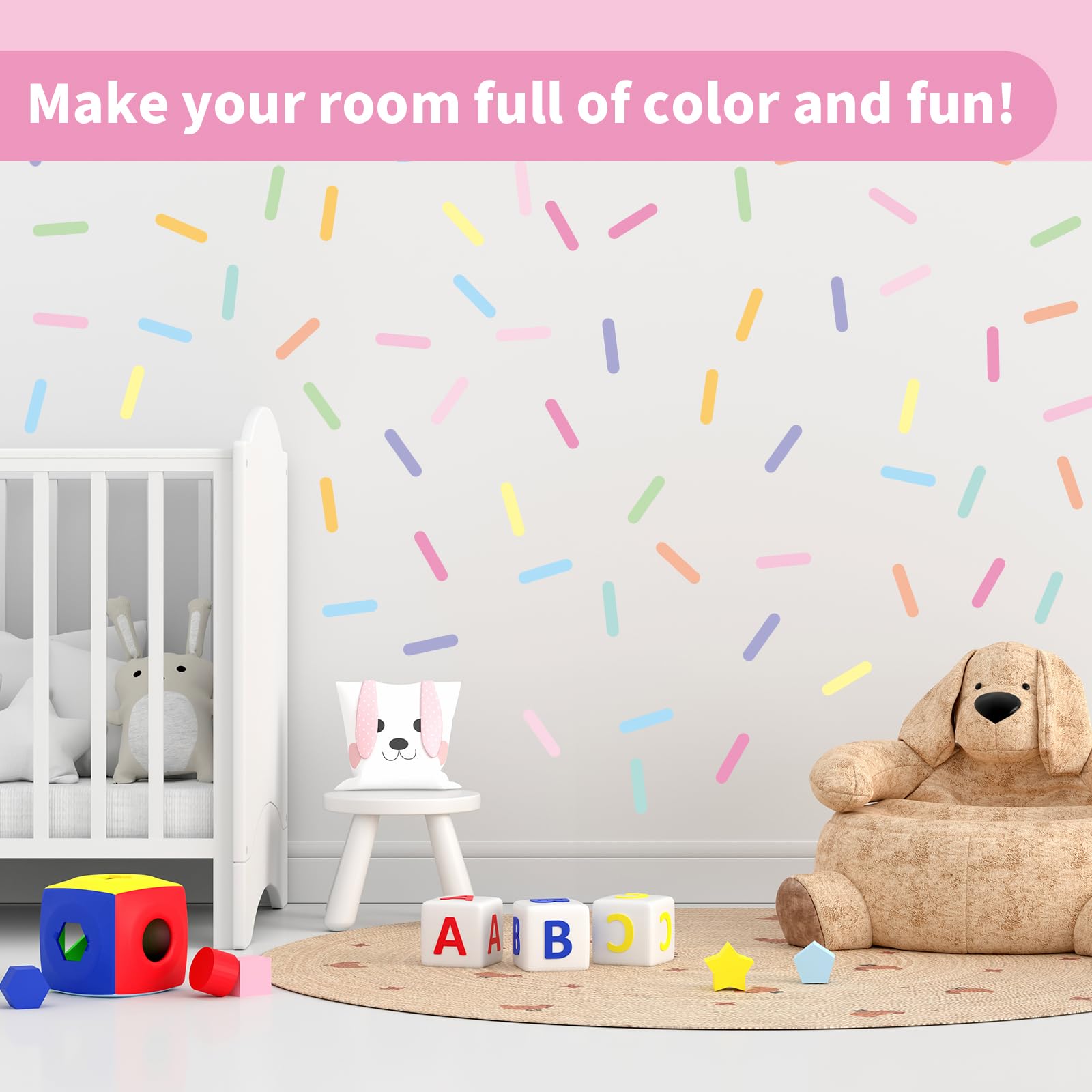 - Instruction: Choose the color you want to match, then Peel and Stick on smooth and clean surface, like wall, glass, window, refrigerator, furniture, door, closet and display board. Our confetti sprinkles wall decals offer endless possibilities to enhance your space