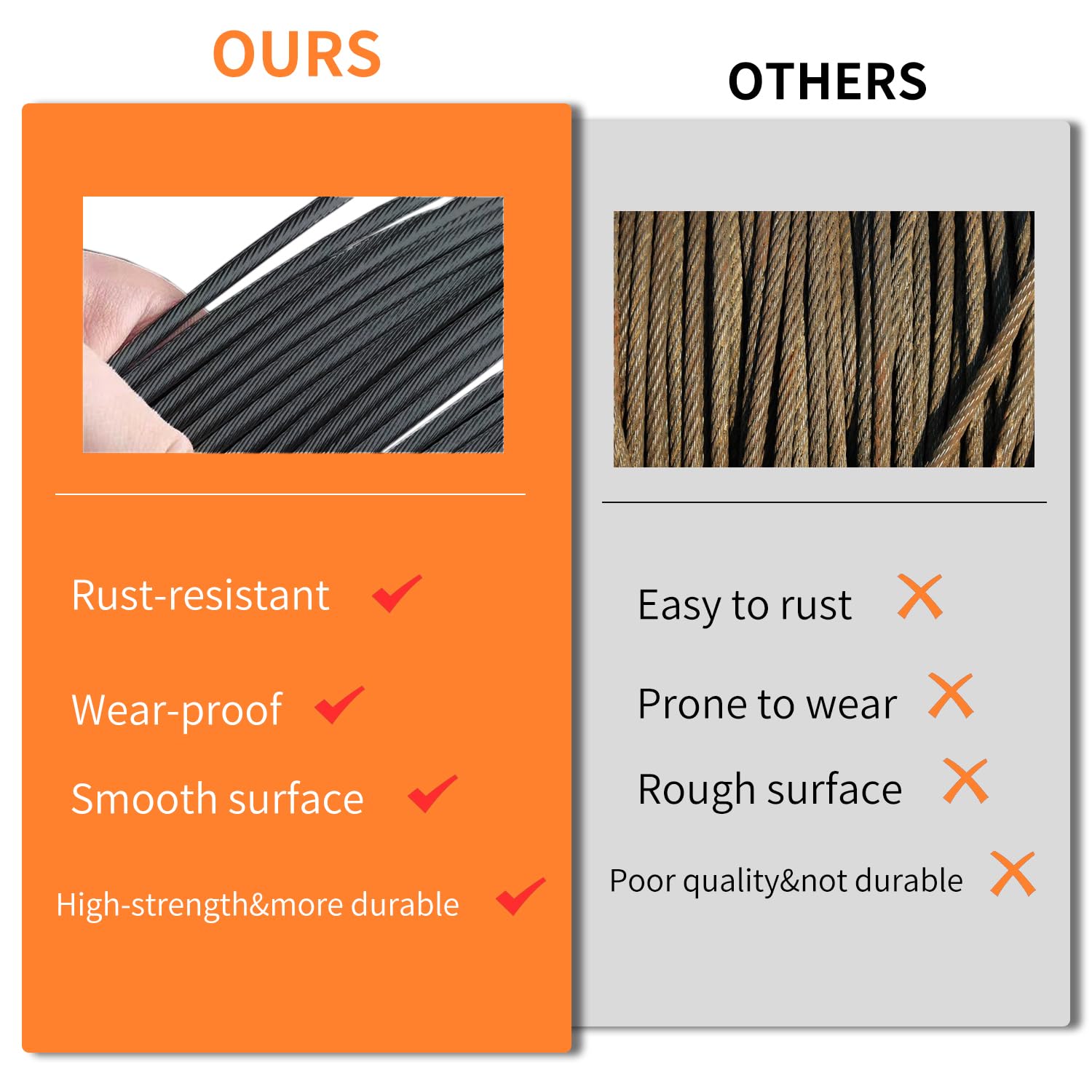- 👍 Convenient Package - Includes 1 x 300ft Black Stainless Steel Wire Rope on a plastic spool for easy use and storage, along with a 10-year warranty and lifetime after-sales support.