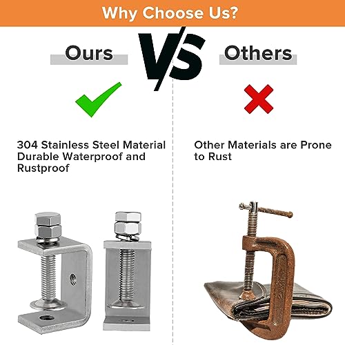 - ¡¼Material¡½Heavy duty C-clamp is made of 304 stainless steel precision casting, corrosion resistant and rust proof. Very strong, even under high pressure is not easy to break.The I-beam design provides strength and stability for long term use, and the protective pad included with the clamp ensures that the clamped object will not be deformed.