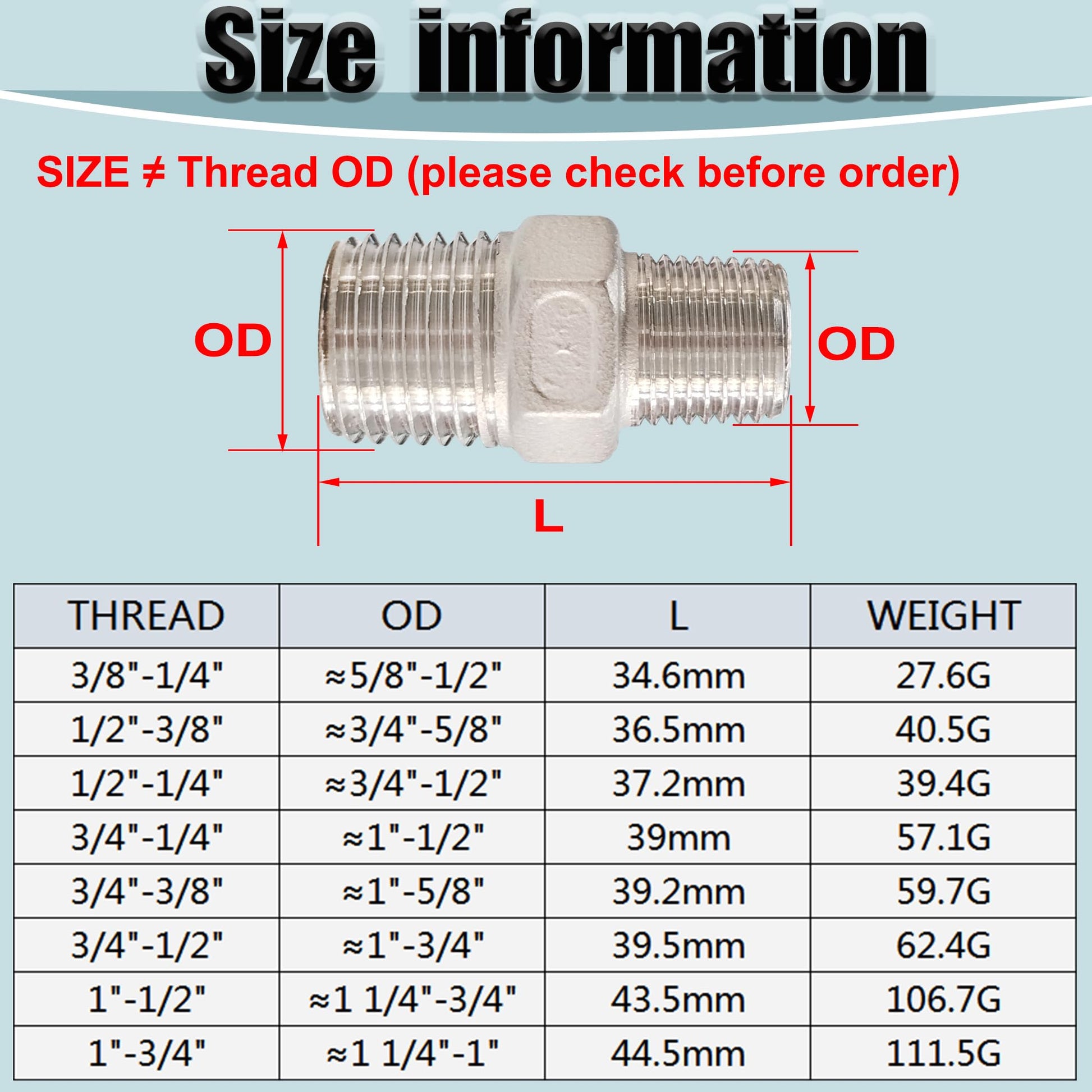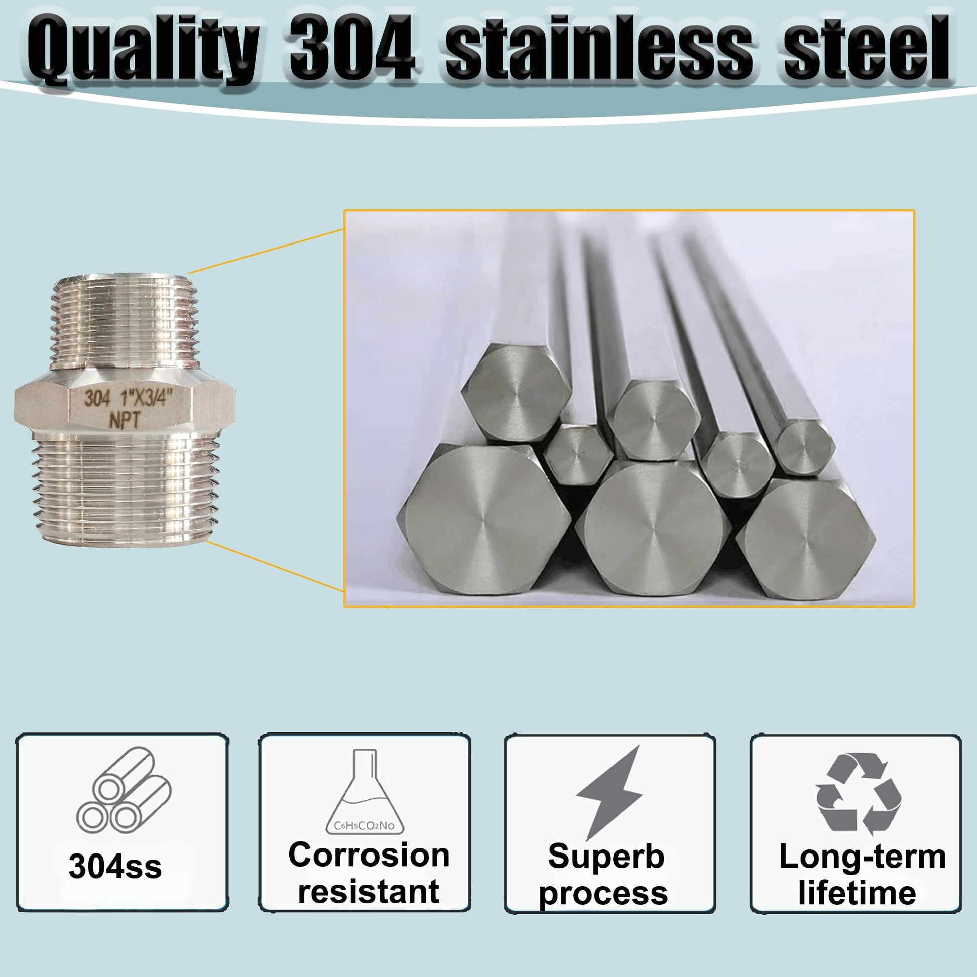 - HIGH-QUALITY 304SS: Hex Nipple Reducer are made of thickened 304 stainless steel, nickel and chromium elements combined, NO LEAD. corrosion resistance, strong oxidation resistance. High abrasion resistance, high corrosion resistance, not easy to rust under humid environment.