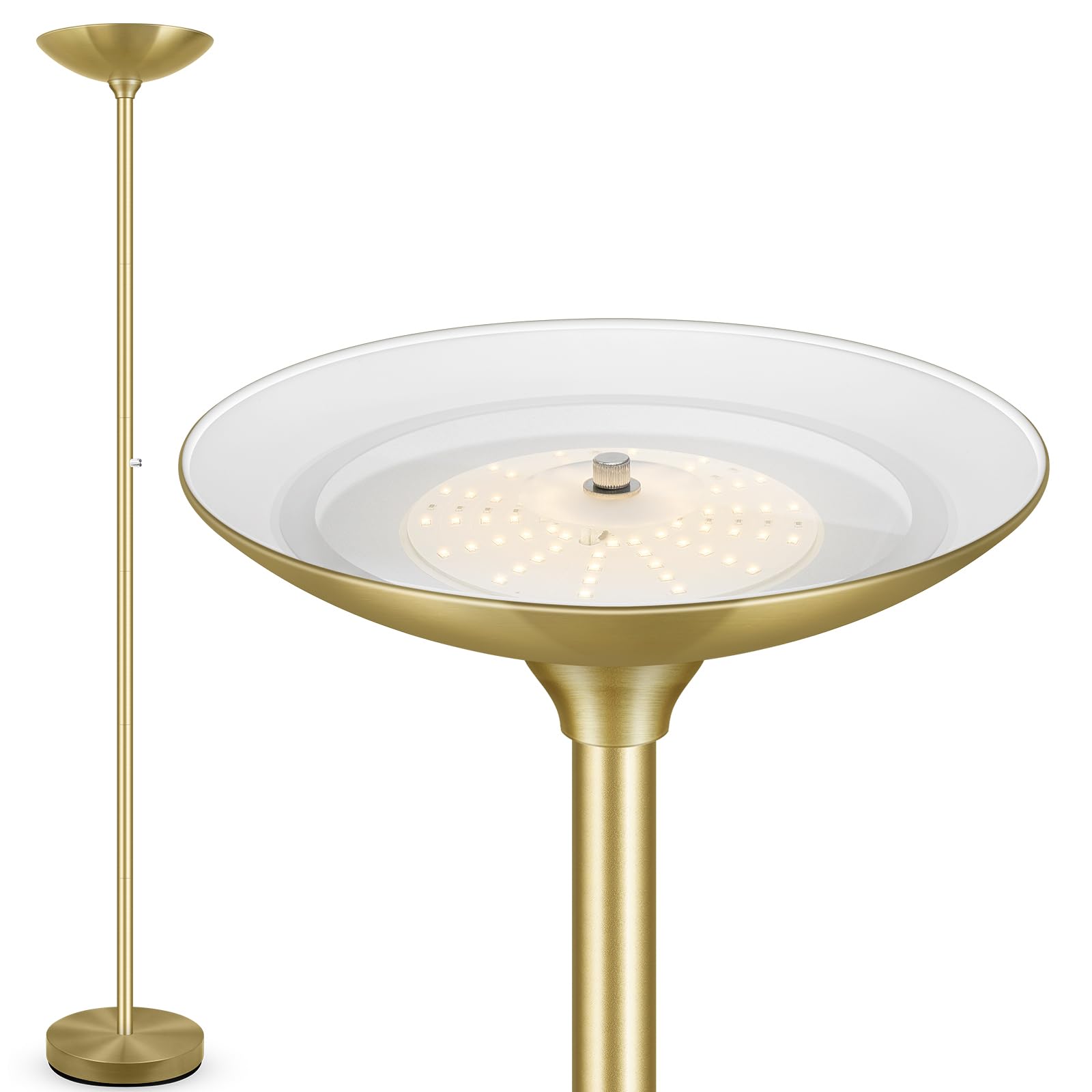 - 【Ideal Halogen Floor Lamp Replacement】The gold torchiere lamp provides an excellent alternative to traditional halogen floor lamps. It delivers energy-efficient lighting while enhancing your room’s décor. Perfect for living rooms, bedrooms, and more, this lamp blends style with practicality. Enhance your smart home experience by connecting this floor lamp to a smart plug or wall switch (not included).