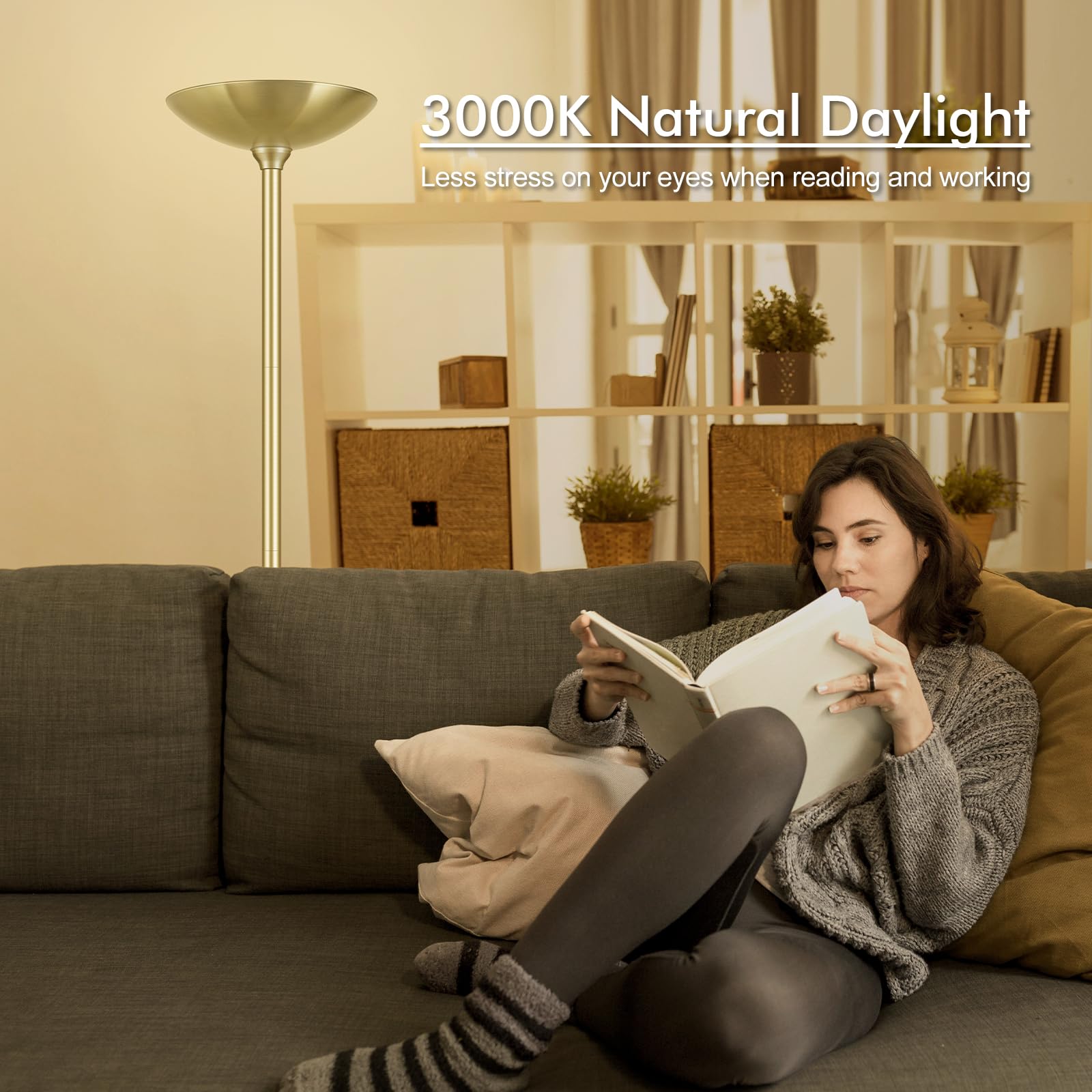 - 【Stepless Dimmable with Rotary Switch】Effortlessly adjust the brightness of our dimmable floor lamp with a rotary switch, offering up to 3600LM of natural 3000K daylight. Whether for reading, working, or relaxing, you can easily find the perfect light level without flicker or glare, protecting your eyes and creating a comfortable atmosphere.
