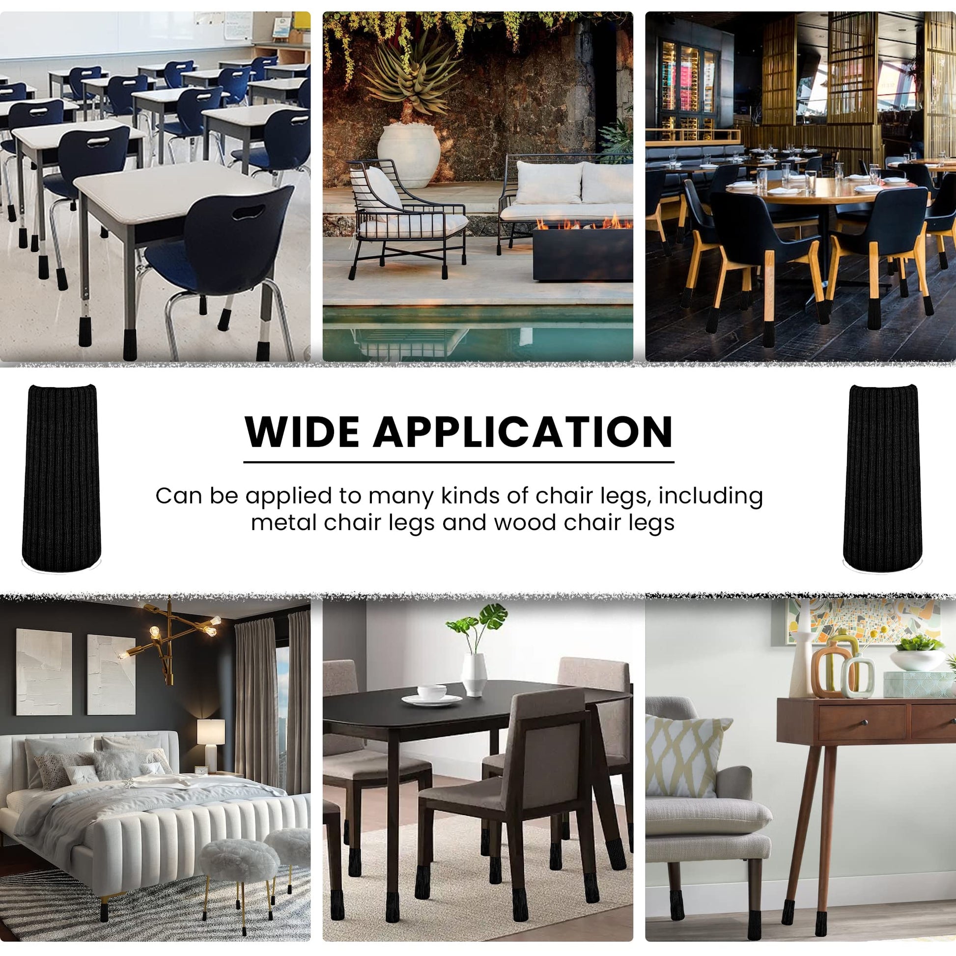 32 Pcs Black Premium Chair Leg Socks Protectors for Hardwood Floors - Do not Easily Fall Off - Very Easy to Put on - Fits All Leg Shapes - High Elastic Bar Stool Leg Covers - Furniture Pads