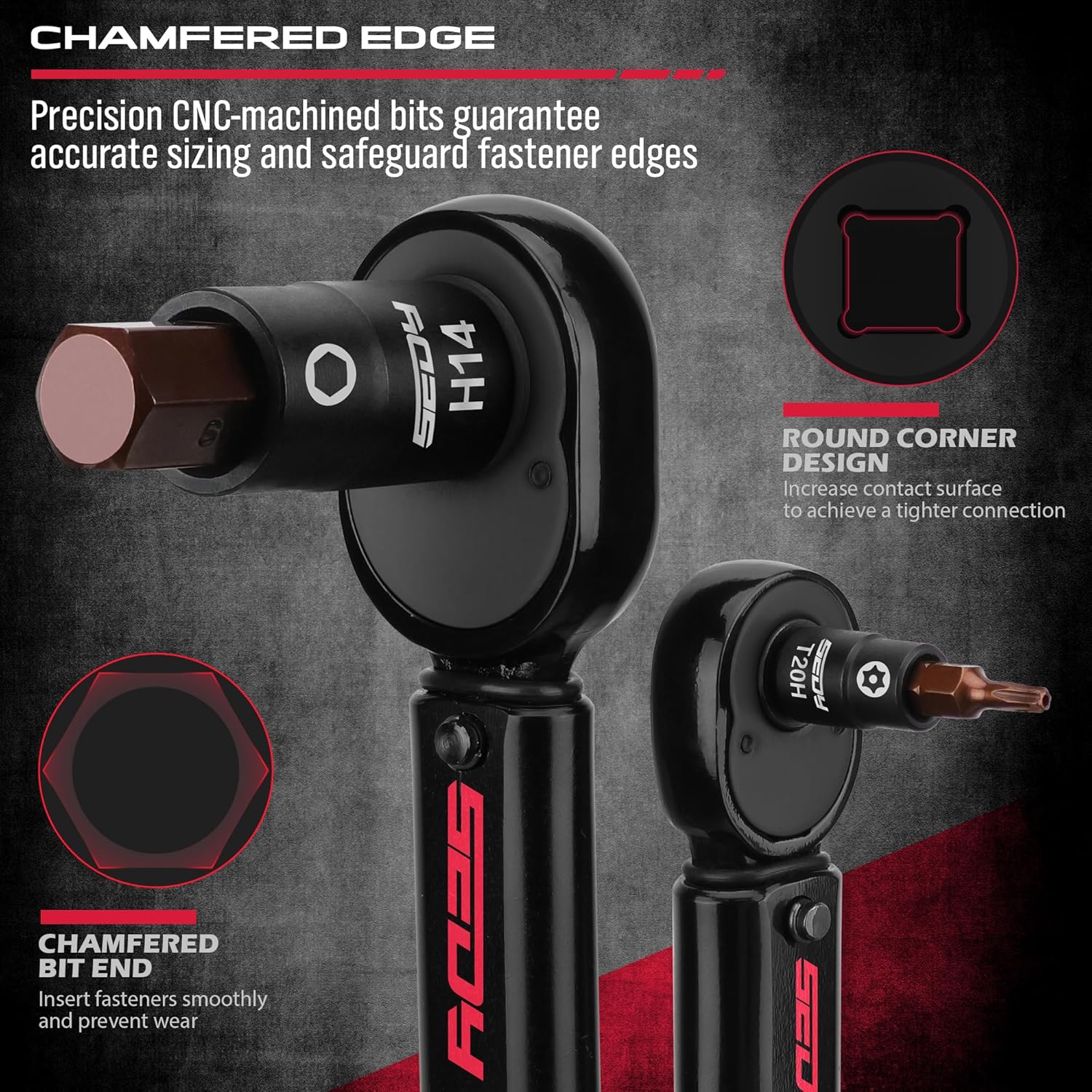 - PRECISE ENGINEERING - Precision-machined hex bits with chamfered ends enable smooth insertion and secure fit, reducing wear on both tools and fasteners. The perfect choice for professional mechanics and enthusiasts.