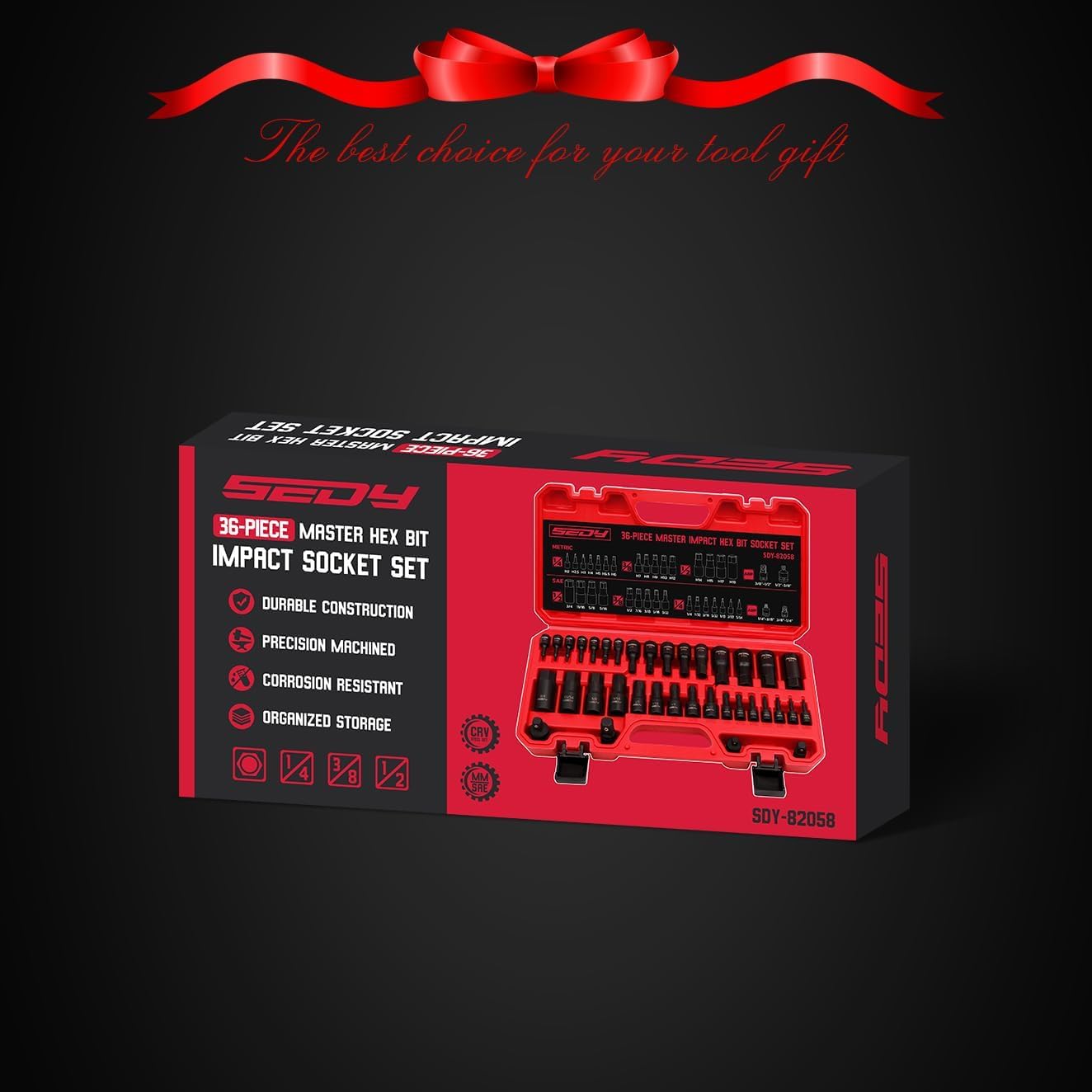 36-Piece Hex Bit Impact Socket Set with Adapters - SAE & Metric, Heavy Duty Storage Case