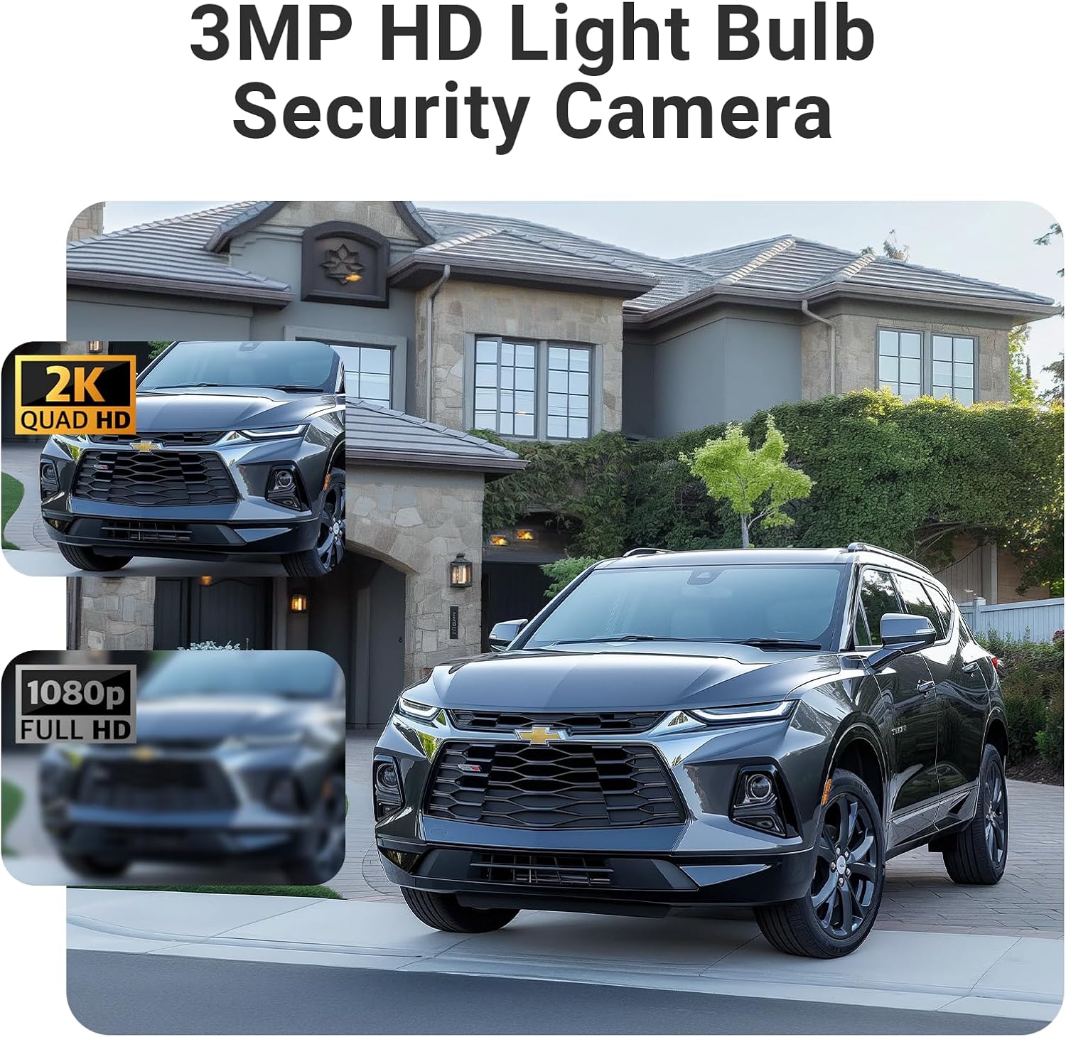 360° PTZ Light Bulb Camera - 3MP WiFi Security Camera with Night Vision & AI Detection
