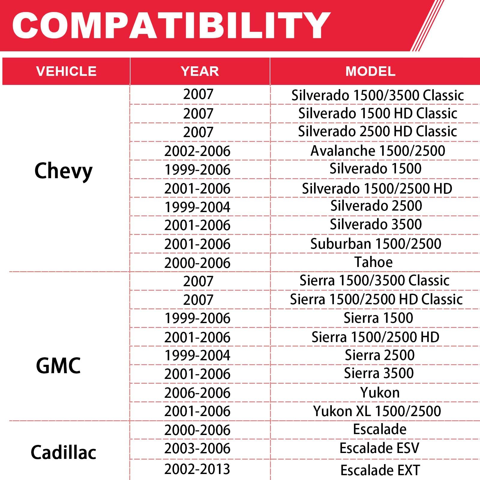 - 【Compatible】Fit for 1999-2007 Cadillac Escalade Chevy Silverado Avalanche Tahoe GMC Sierra.For More Detailed Models,Please See the Adaptation Tableand and Detail Descriptions.