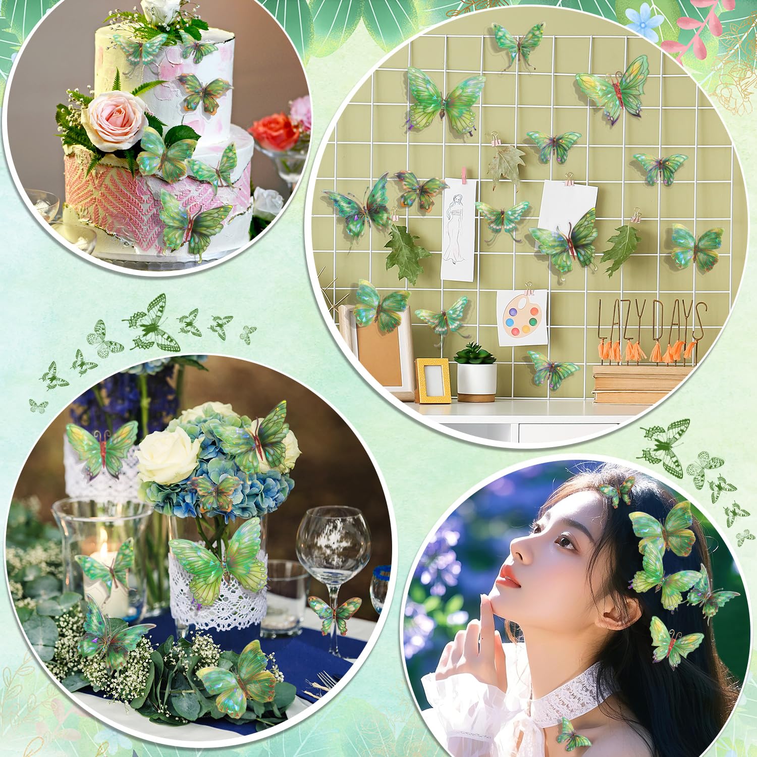 3D Butterfly Wall Decor - 50PCS Removable PVC Butterflies Wall Stickers- Multi-Size (2.8"-3.9")- DIY Removable Wall Art Decal for Kids Room, Nursery, Bedroom, Classroom, Party Decoration (Green)
