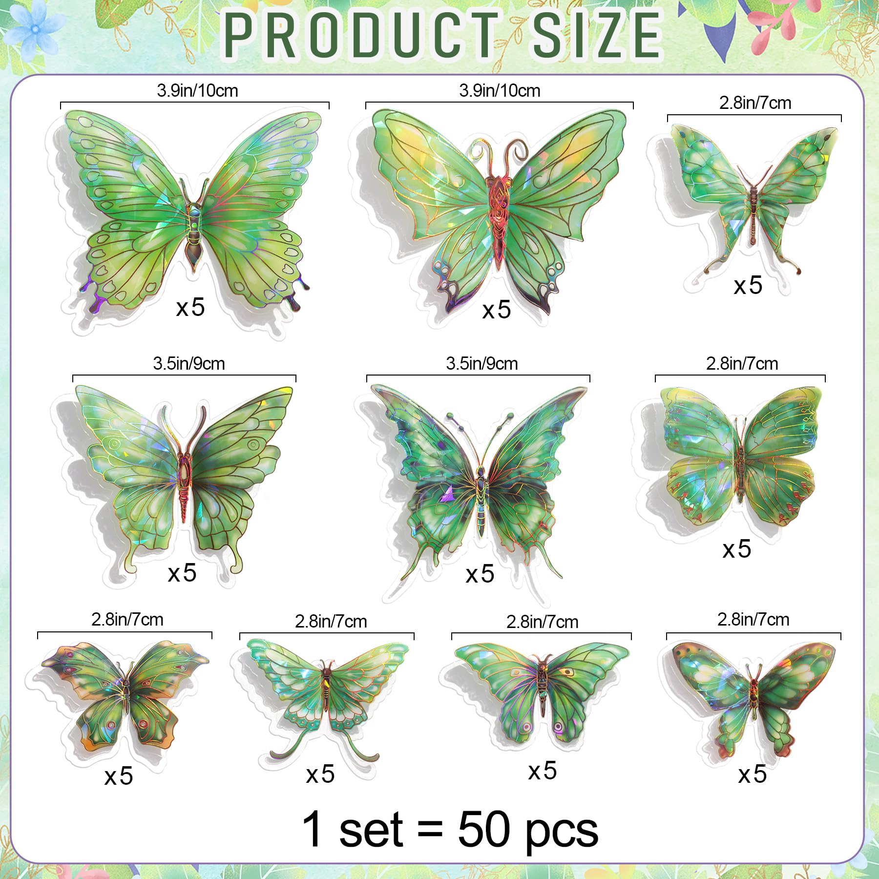 - 50 Realistic 3D Butterflies Our largest collection yet! Features 50 uniquely shaped lifelike butterflies in 3 sizes (2.8", 3.5", 3.9") and 4 vibrant colors (pink, blue, green, purple). Each butterfly has intricate wing details and foldable PVC wings for customizable 3D effects.
