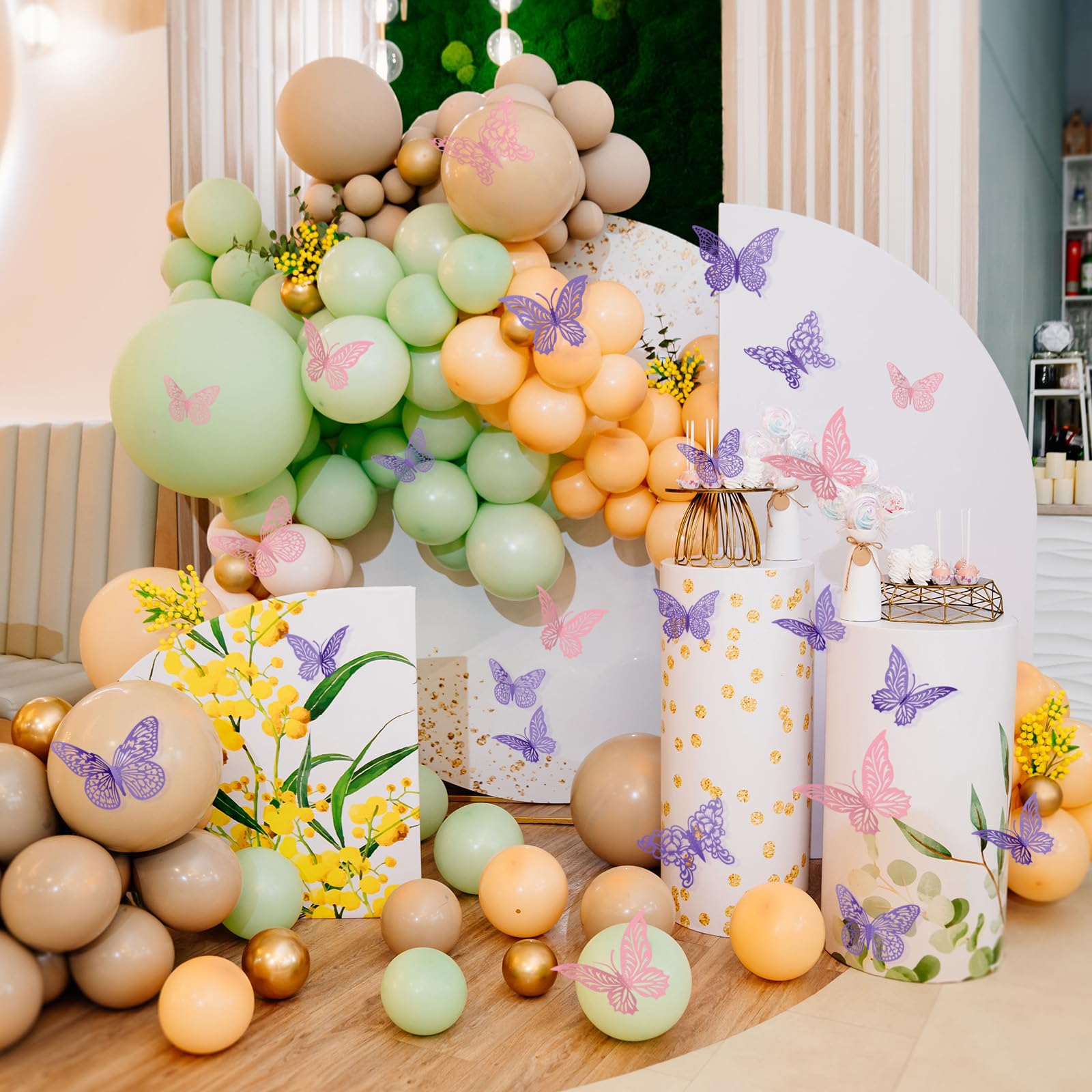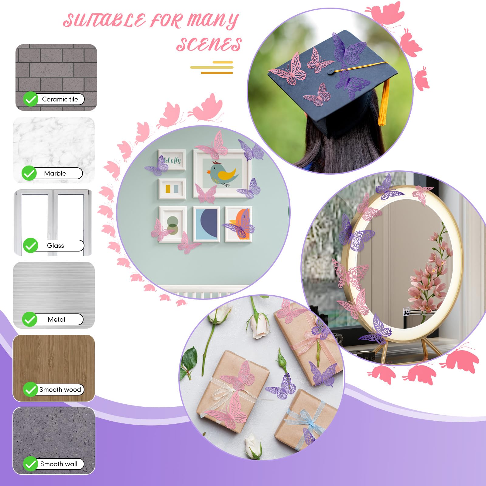 3D Gold Butterfly Wall Decor 3 Sizes 4 Styles Butterfly Party Decorations Cake Decorations Removable Stickers Wall Decor Room Mural Metallic Kids (Purple+Pink, 96Pcs)