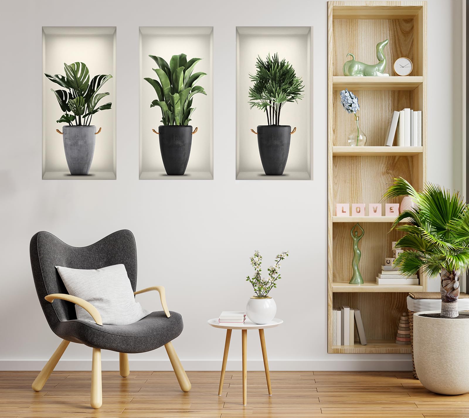 Details: 3D Green Pot Plants Wall Decals, Tropical Potted Stickers, Creative Vinyl Peel and Stick Removable Wall Art Decor for Bedroom Living Room Kitchen.