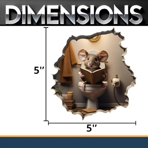 - Whimsical Design: This 3D wall decal features an adorable mouse sitting on a toilet, engrossed in reading a book in a cozy mouse hole setting.